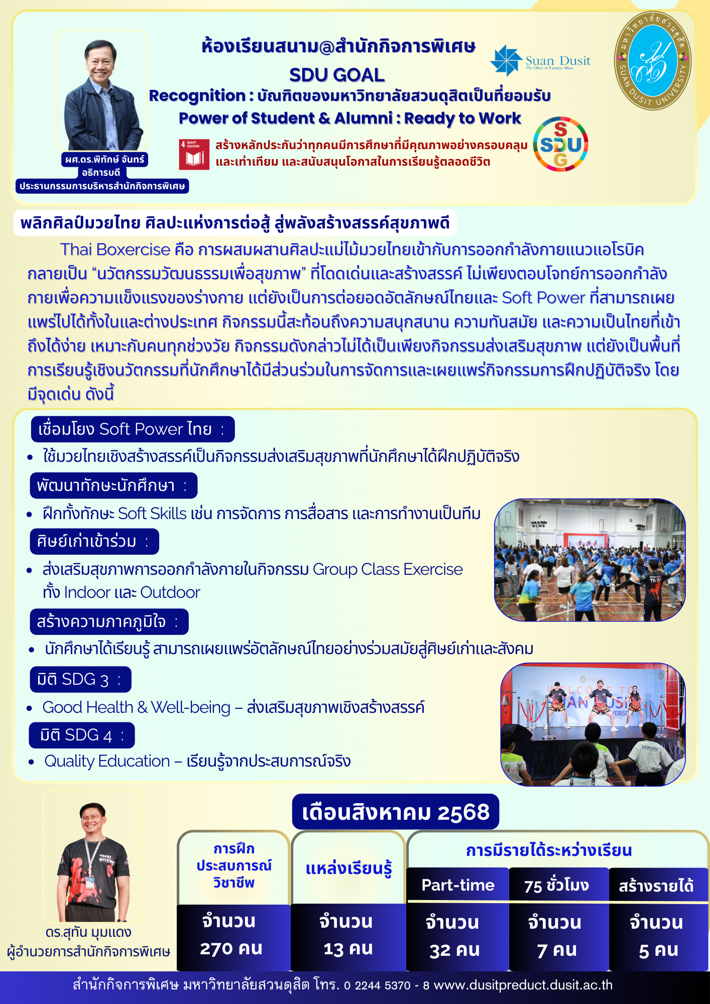 - การฝึกประสบการณ์วิชาชีพนักศึกษาสำนักกิจการพิเศษ