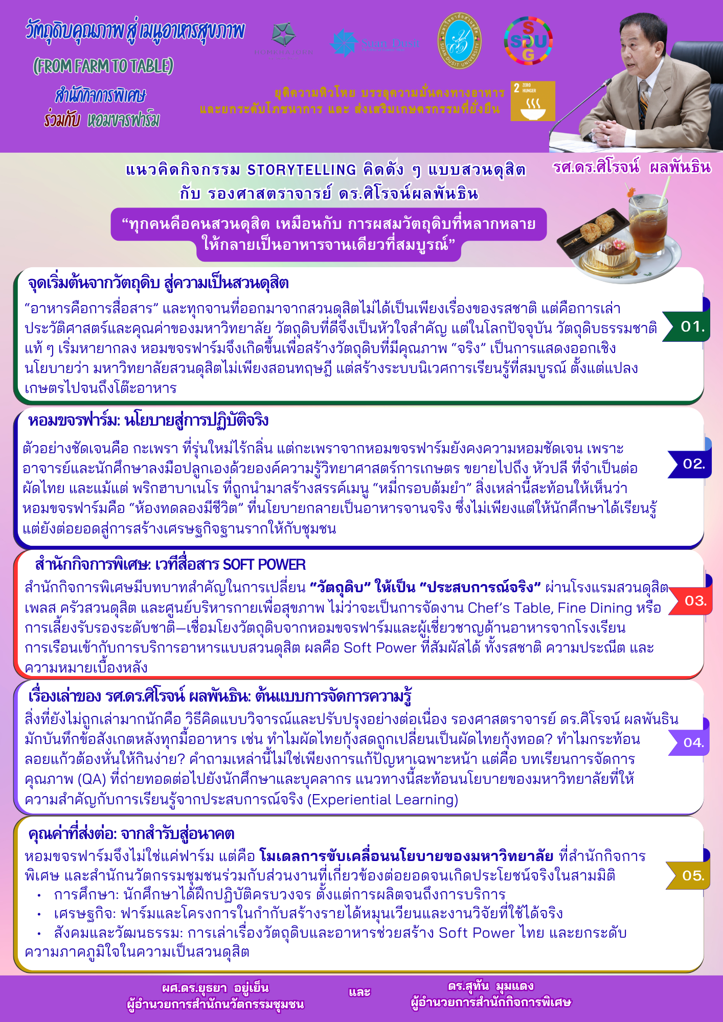 - สนับสนุนอัตลักษณ์ด้านอาหารของมหาวิทยาลัย: นักศึกษาฝึกงานแบบมีรายได้