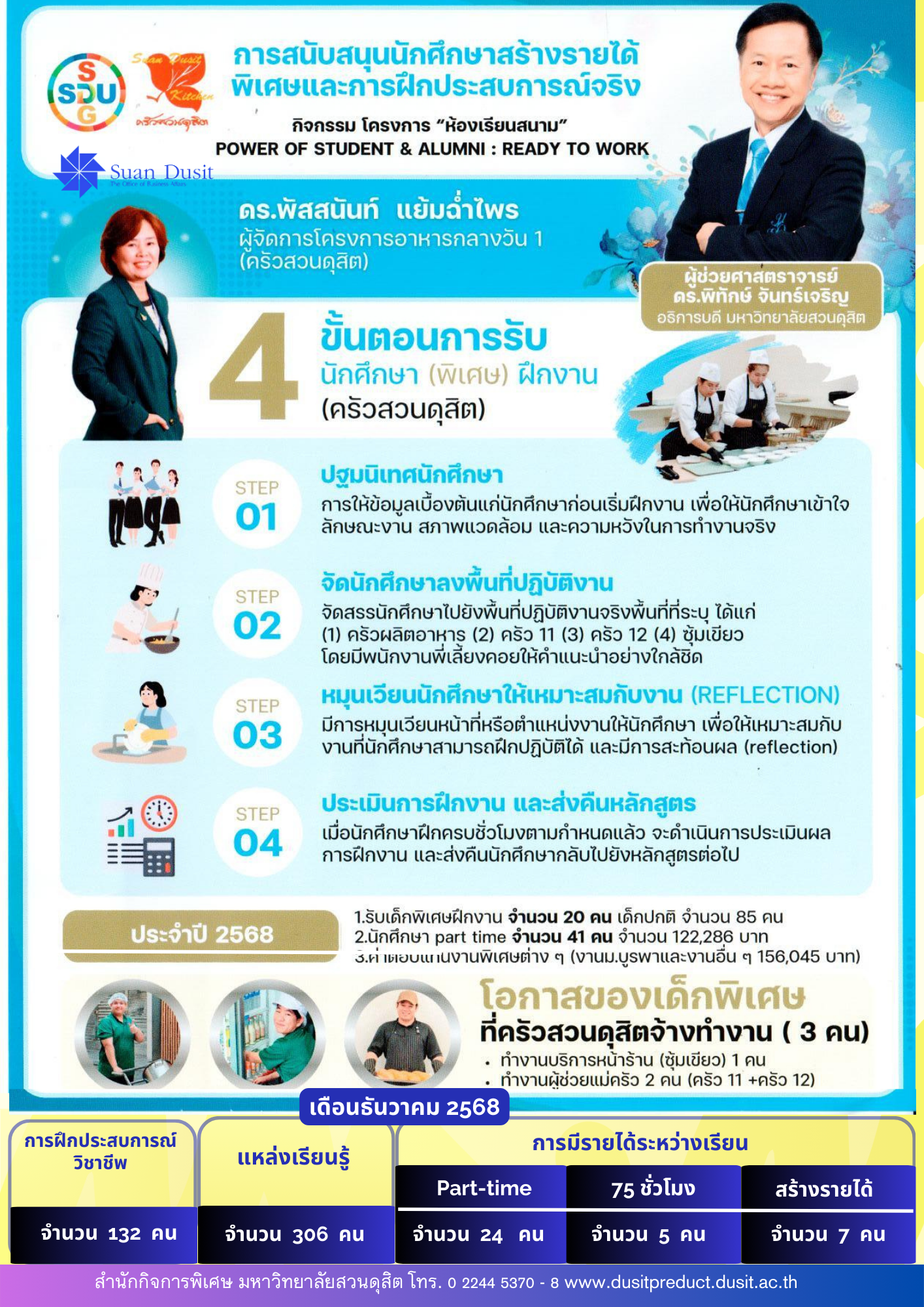 - ขั้นตอนการรับนักศึกษา (พิเศษ) ฝึกงาน โครงการอาหารกลางวัน 1 (ครัวสวนดุสิต) เดือนธันวาคม 2568