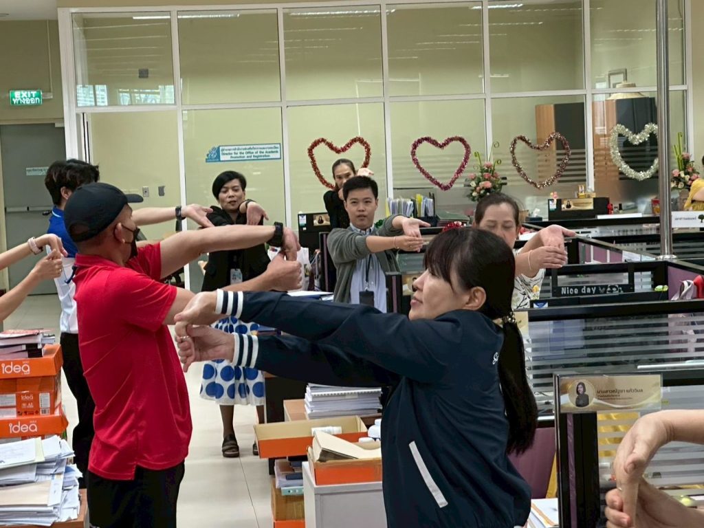 โครงการศูนย์บริหารกายเพื่อสุขภาพ สำนักกิจการพิเศษ มหาวิทยาลัยสวนดุสิต เป็นวิทยากรบรรยายหัวข้อ วิธีการปฏิบัติตนบรรเทาอาการออฟฟิศซินโดรม ให้กับบุคลากรสำนักส่งเสริมวิชาการและงานทะเบียน ตามโครงการ Office Fit – สุขภาพดีที่โต๊ะทำงาน เพื่อการลดความเสี่ยงจากอาการออฟฟิศซินโดรม พร้อมทั้งเสริมสร้างความรู้ ความเข้าใจในการปรับพฤติกรรม และสภาพแวดล้อมในการทำงาน ณ สำนักส่งเสริมวิชาการและงานทะเบียน ชั้น 2 อาคารสำนักงานมหาวิทยาลัย มหาวิทยาลัยสวนดุสิต เมื่อวันที่ 8 กันยายน 2568