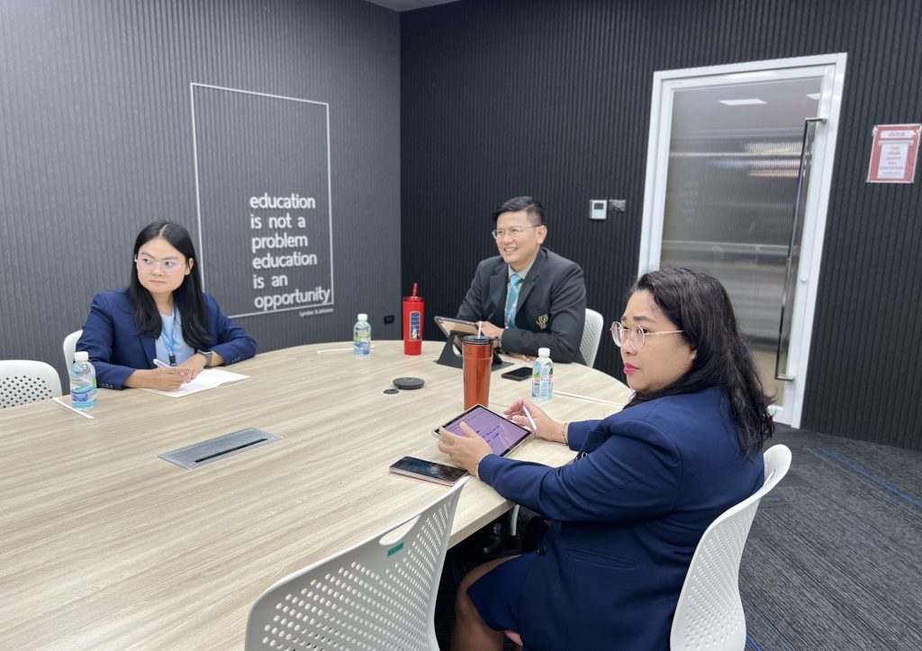 ดร.สุทัน มุมแดง ผู้อำนวยการสำนักกิจการพิเศษ มหาวิทยาลัยสวนดุสิต เป็นประธานการประชุมติดตามการดำเนินงานโครงการอาหารกลางวัน 1 (ครัวสวนดุสิต และหอพักนักศึกษา) ร่วมกับ ศูนย์การศึกษา นครนายก นำโดยนางธมลวรรณ เปรมศรี รองผู้อำนวยการศูนย์การศึกษา นครนายก พร้อมด้วย Miss Evgeniya Trofimenko รักษาการแทนผู้จัดการโรงเรียนสาธิตละอออุทิศ นครนายก นางสาวชมพูนุท ทองภู รักษาการแทนครูใหญ่ฯ และผู้เกี่ยวข้อง เข้าประชุมหารือดำเนินงานด้านต่าง ๆ และติดตามการดำเนินงานโครงการอาหารกลางวัน 1 (ครัว สวนดุสิต และหอพักนักศึกษา) ในรูปแบบออนไลน์ผ่าน MS Teams ณ ห้อง Online Learning 08 อาคาร 1 มหาวิทยาลัยสวนดุสิต เมื่อวันที่ 19 กันยายน 2568