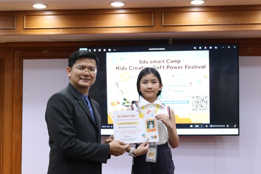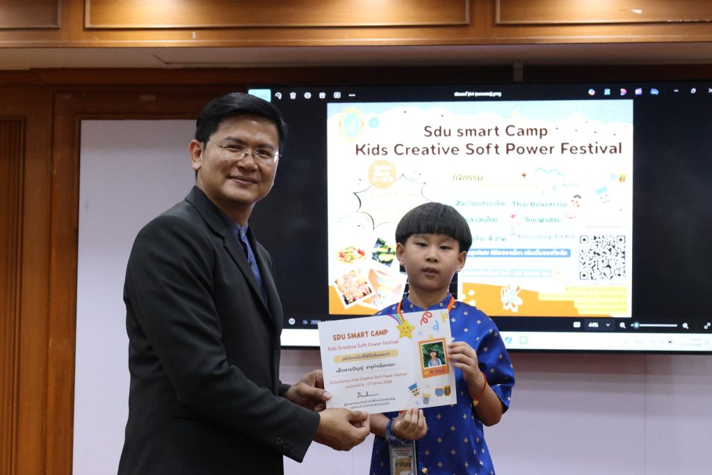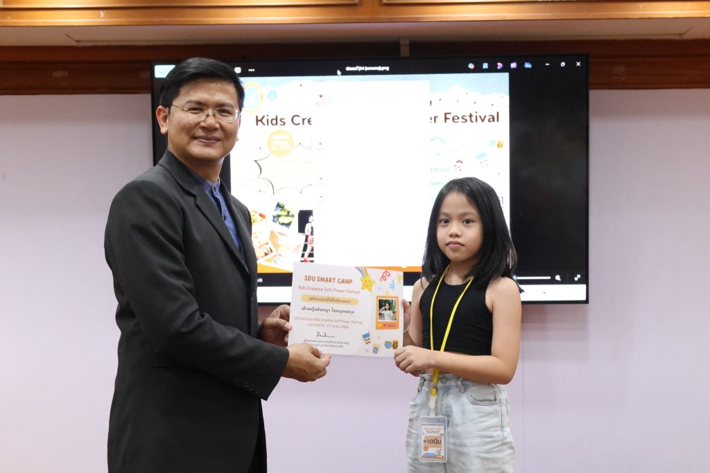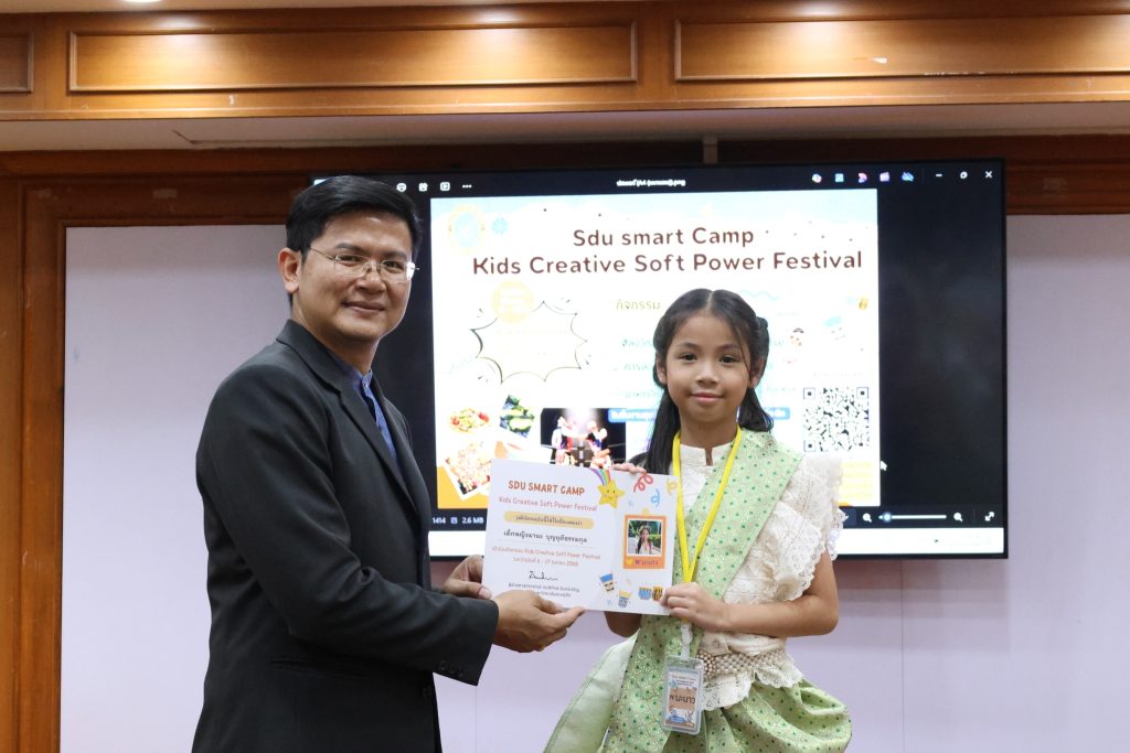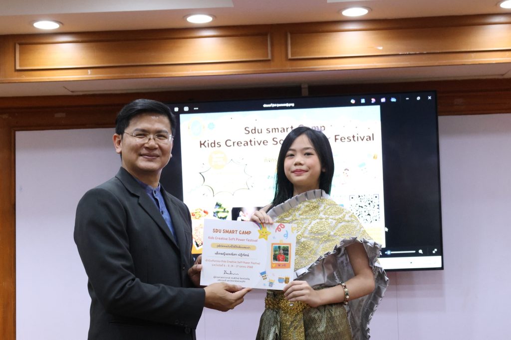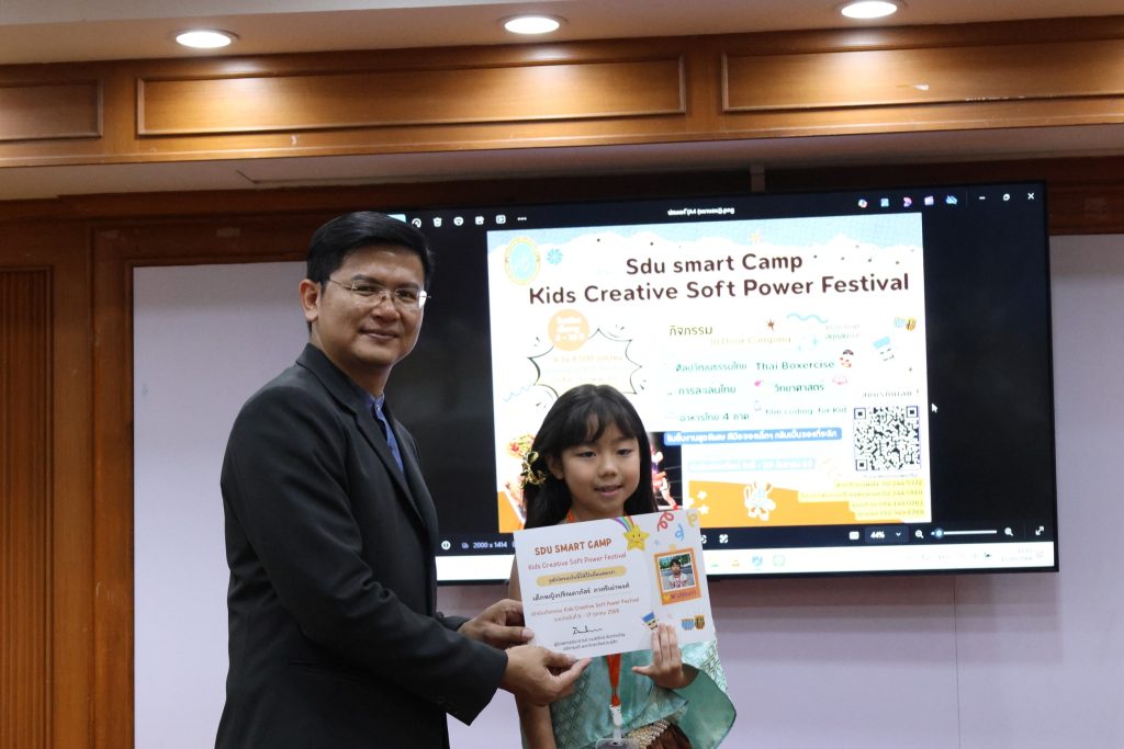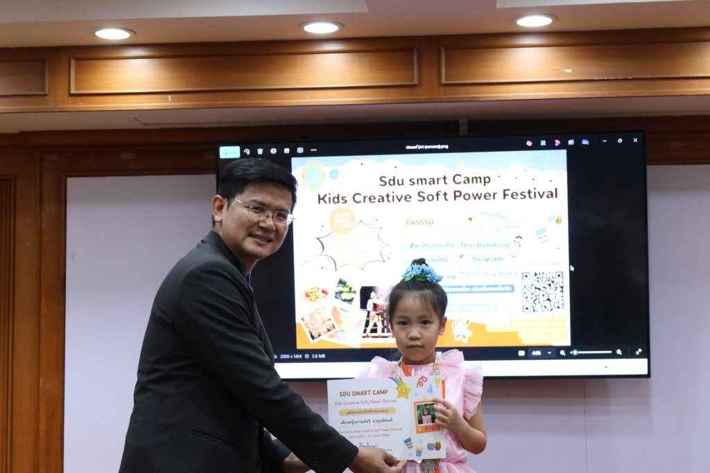สำนักกิจการพิเศษ ร่วมกับ โครงการสอนดนตรีบุคคลภายนอก คณะมนุษยศาสตร์และสังคมศาสตร์ มสด. จัดกิจกรรม “เสริมสร้างพัฒนาการสำหรับเด็กประถมศึกษา : Kids Creative Soft Power Festival @ SDU Smart Camp in October 2025” (วันที่ 9) และมอบประกาศนียบัตรแก่ผู้เข้าร่วมกิจกรรม