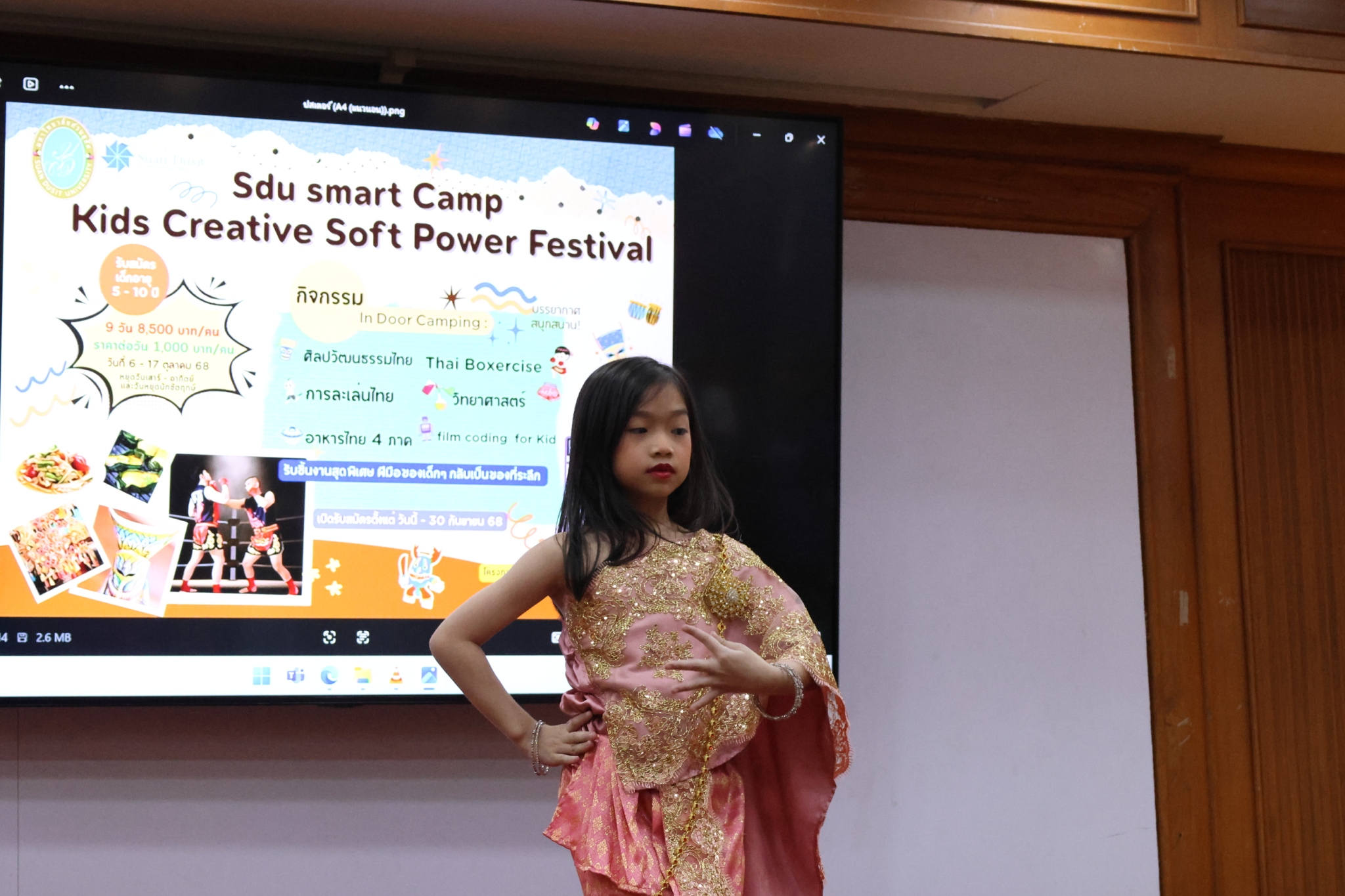สำนักกิจการพิเศษ ร่วมกับ โครงการสอนดนตรีบุคคลภายนอก คณะมนุษยศาสตร์และสังคมศาสตร์ มหาวิทยาลัยสวนดุสิต จัดกิจกรรม “เสริมสร้างพัฒนาการสำหรับเด็กประถมศึกษา : Kids Creative Soft Power Festival @ SDU Smart Camp in October 2025” เพื่อสนับสนุนพัฒนาการด้านร่างกาย อารมณ์ สังคม และสติปัญญา สำหรับเด็กอายุ 5-10 ปี โดยนำองค์ความรู้ด้านวิทยาศาสตร์ เทคโนโลยี (IT) ภาษาอังกฤษ วัฒนธรรมจีน กีฬา พยาบาลศาสตร์ และวัฒนธรรมอาหาร มาบูรณาการร่วมกัน ซึ่งกิจกรรมจัดขึ้นระหว่างวันที่ 6-17 ตุลาคม 2568 ทั้งนี้ กิจกรรมวันที่ 9 (วันที่ 17 ตุลาคม 2568) ประกอบด้วยกิจกรรมเรียนรู้นุ่งผ้าโจงกระเบน โดย อาจารย์ วรกมล วงษ์สถาปนาเลิศ และกิจกรรมวิทยาศาสตร์ (วิทยาศาสตร์กับอาหารท้องถิ่น) โดย คณะวิทยาศาสตร์และเทคโนโลยี ในโอกาสนี้ ผศ.ดร.พิทักษ์ จันทร์เจริญ อธิการบดีมหาวิทยาลัยสวนดุสิต ได้เข้าตรวจเยี่ยม และประเมินผลโครงการฯ ดังกล่าวฯ ณ ห้องลิขิต 1 และห้องกาหลา โรงแรมสวนดุสิต เพลส