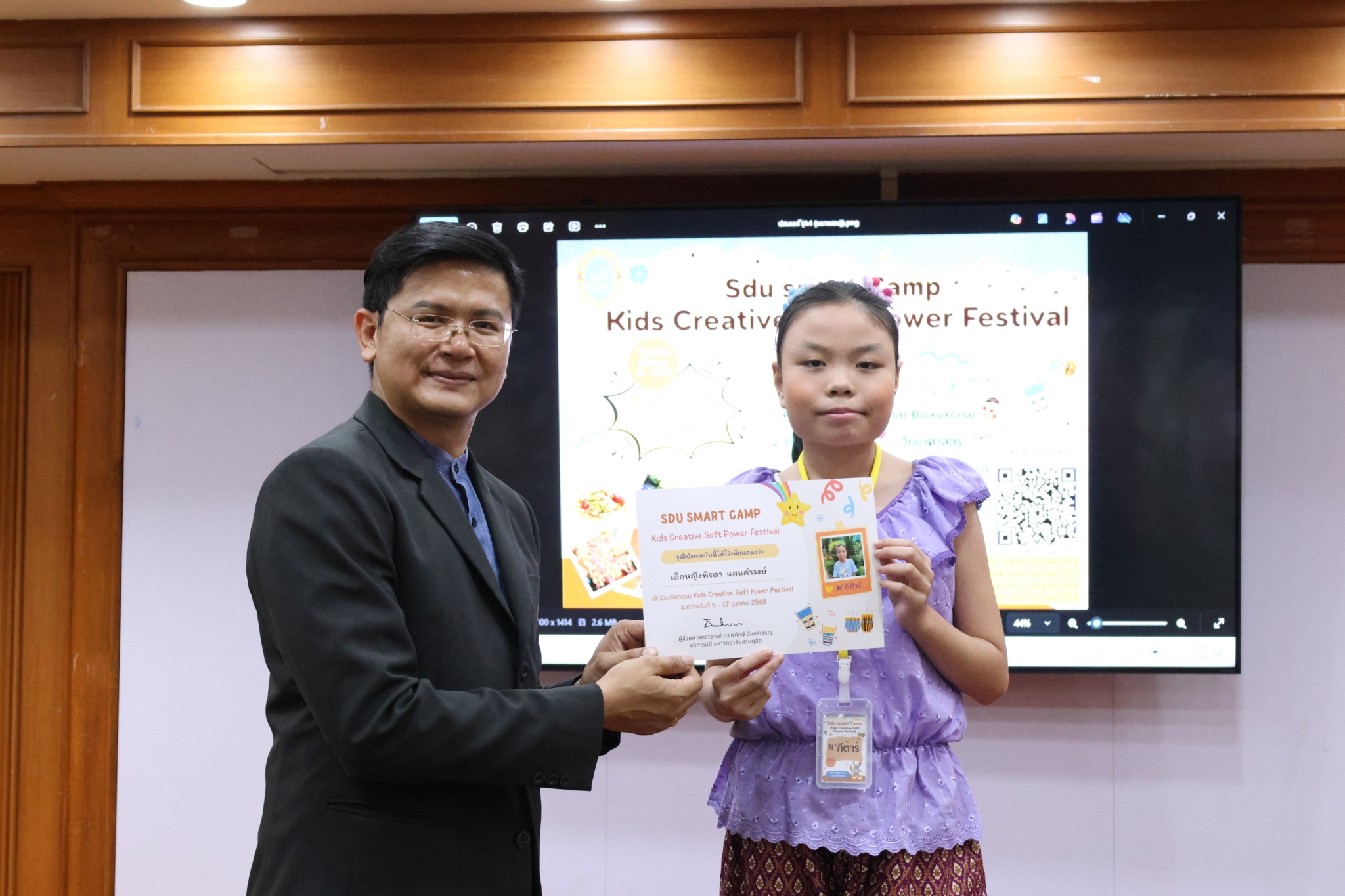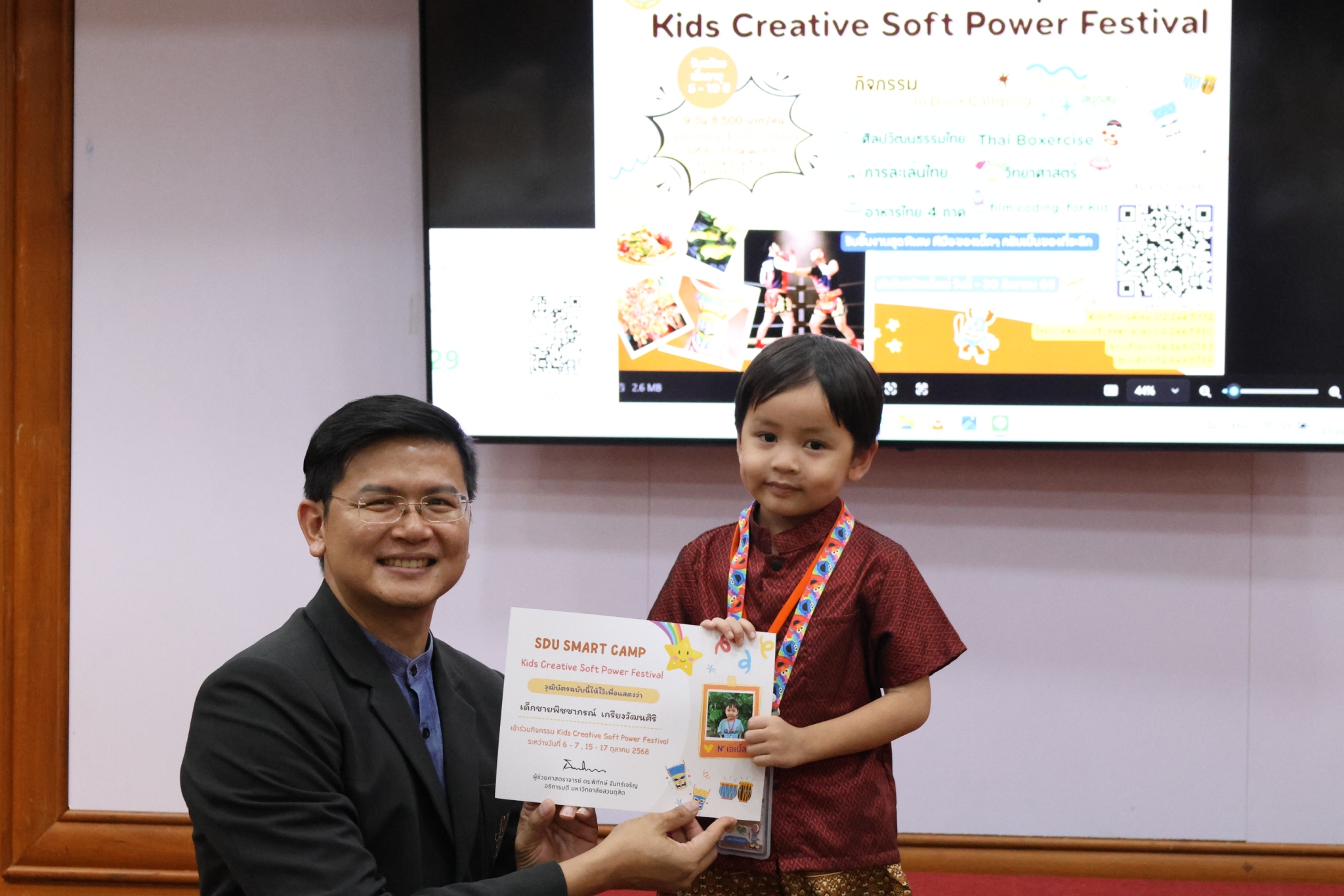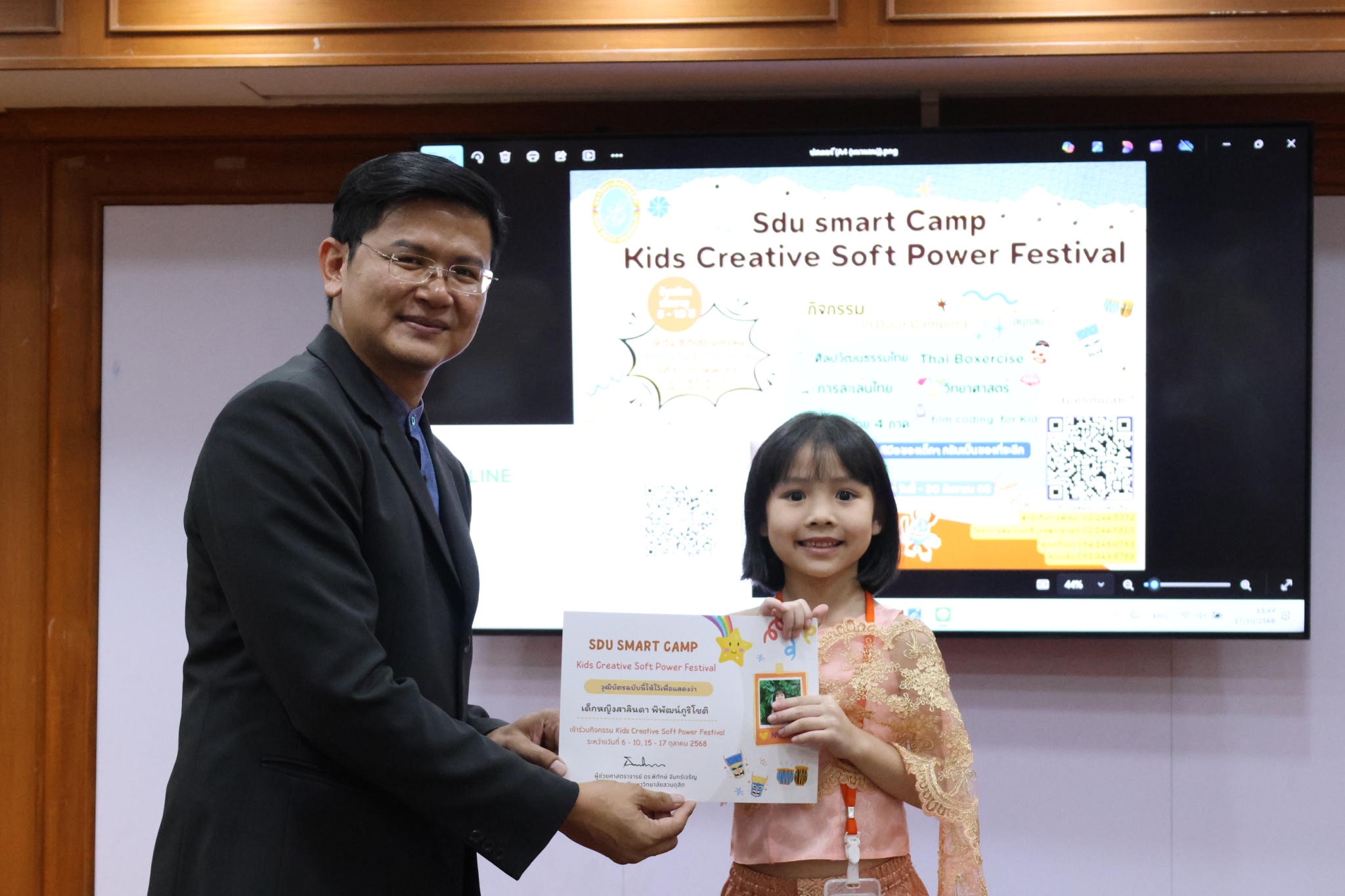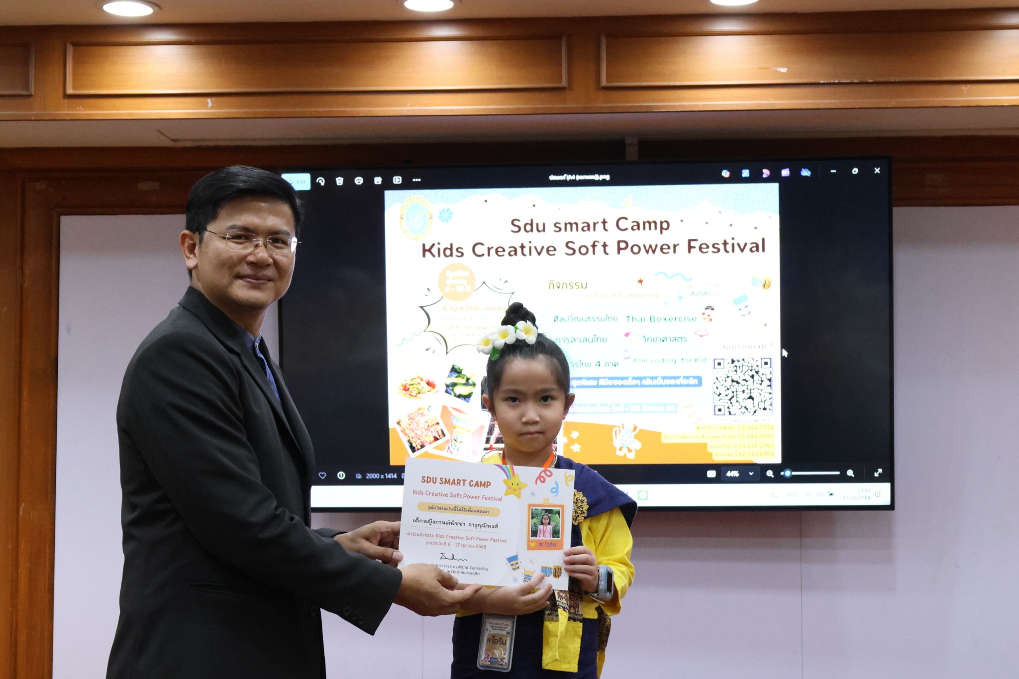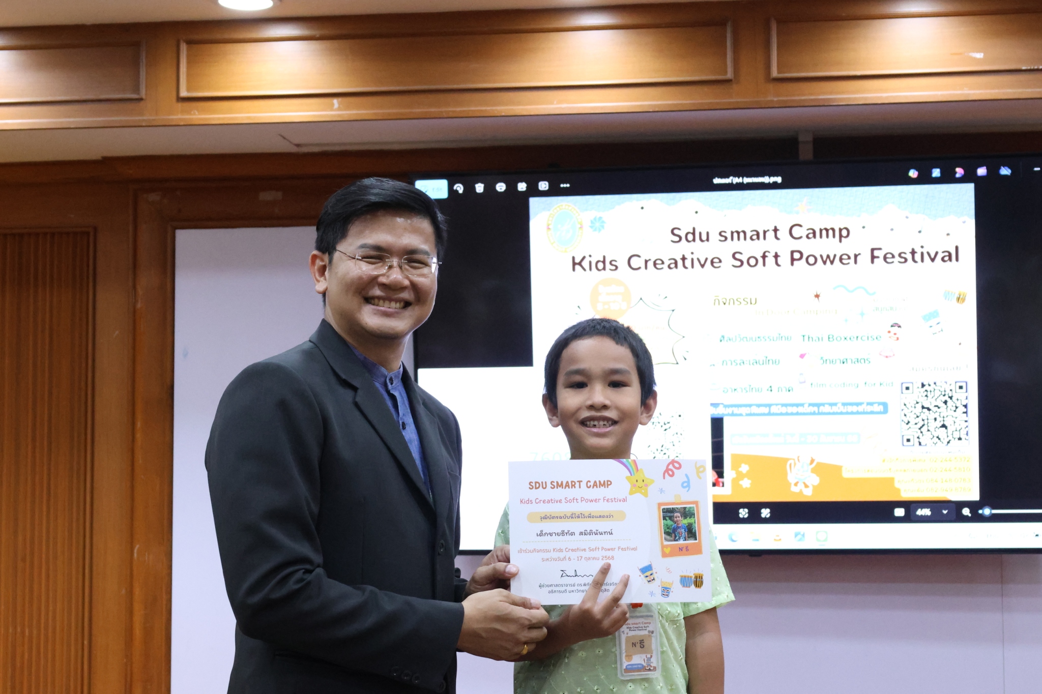 สำนักกิจการพิเศษ ร่วมกับ โครงการสอนดนตรีบุคคลภายนอก คณะมนุษยศาสตร์และสังคมศาสตร์ มสด. จัดกิจกรรม “เสริมสร้างพัฒนาการสำหรับเด็กประถมศึกษา : Kids Creative Soft Power Festival @ SDU Smart Camp in October 2025” (วันที่ 9) และมอบประกาศนียบัตรแก่ผู้เข้าร่วมกิจกรรม