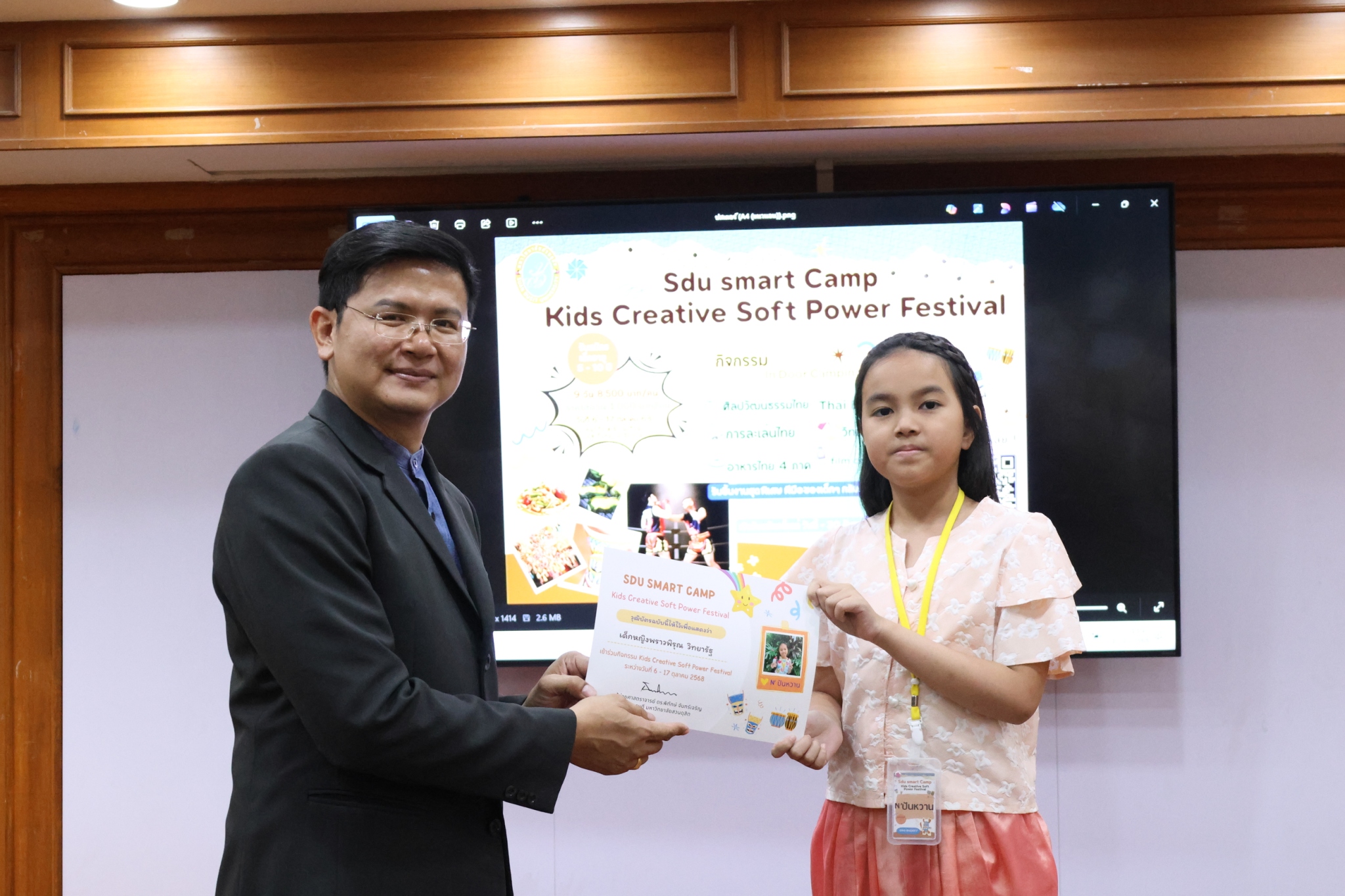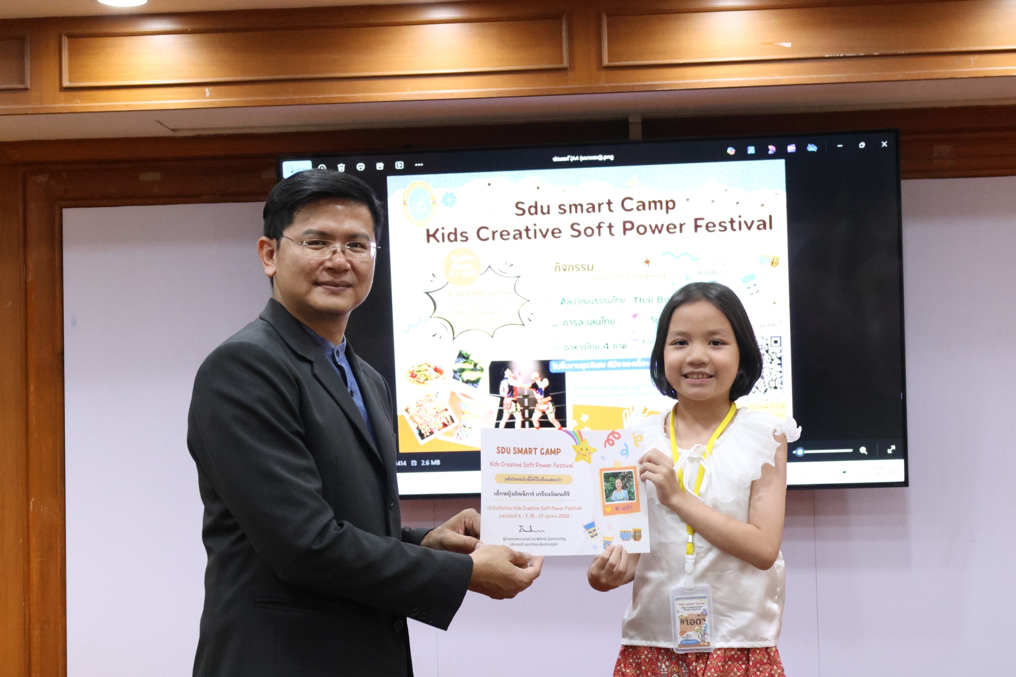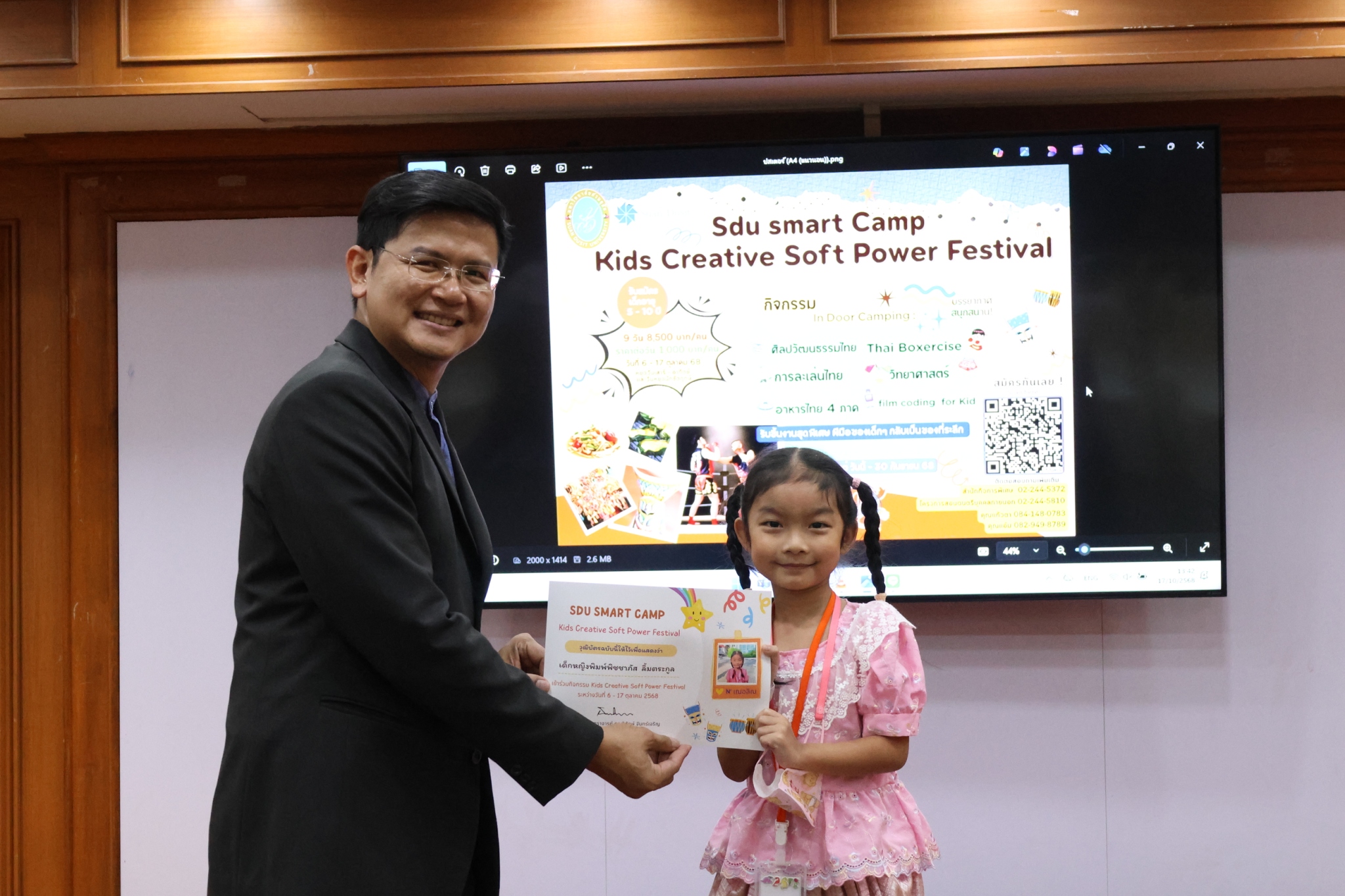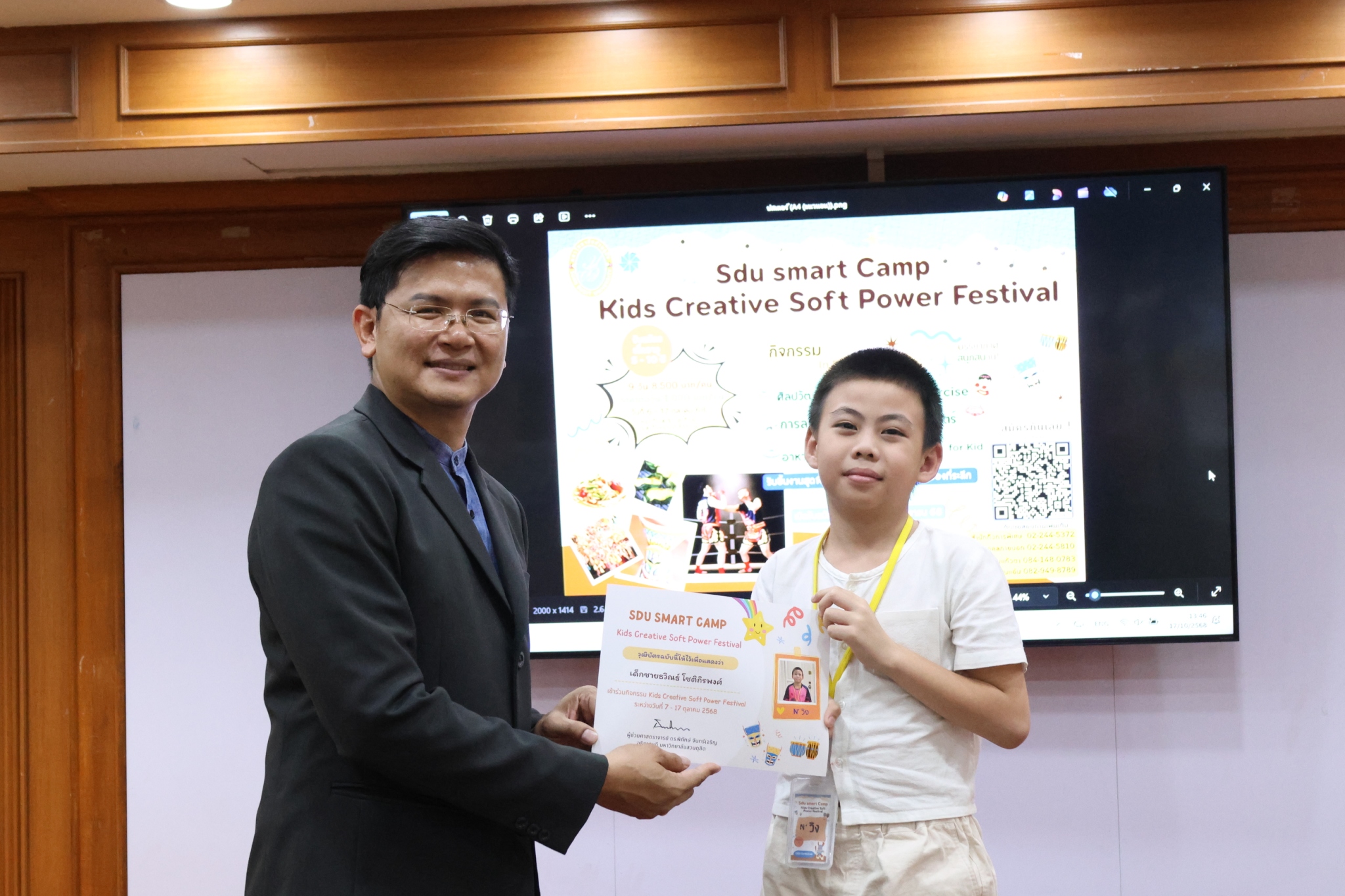 สำนักกิจการพิเศษ ร่วมกับ โครงการสอนดนตรีบุคคลภายนอก คณะมนุษยศาสตร์และสังคมศาสตร์ มสด. จัดกิจกรรม “เสริมสร้างพัฒนาการสำหรับเด็กประถมศึกษา : Kids Creative Soft Power Festival @ SDU Smart Camp in October 2025” (วันที่ 9) และมอบประกาศนียบัตรแก่ผู้เข้าร่วมกิจกรรม