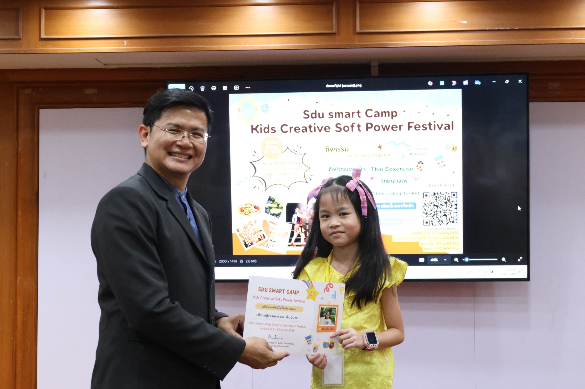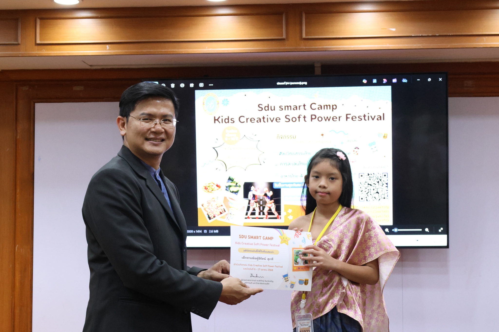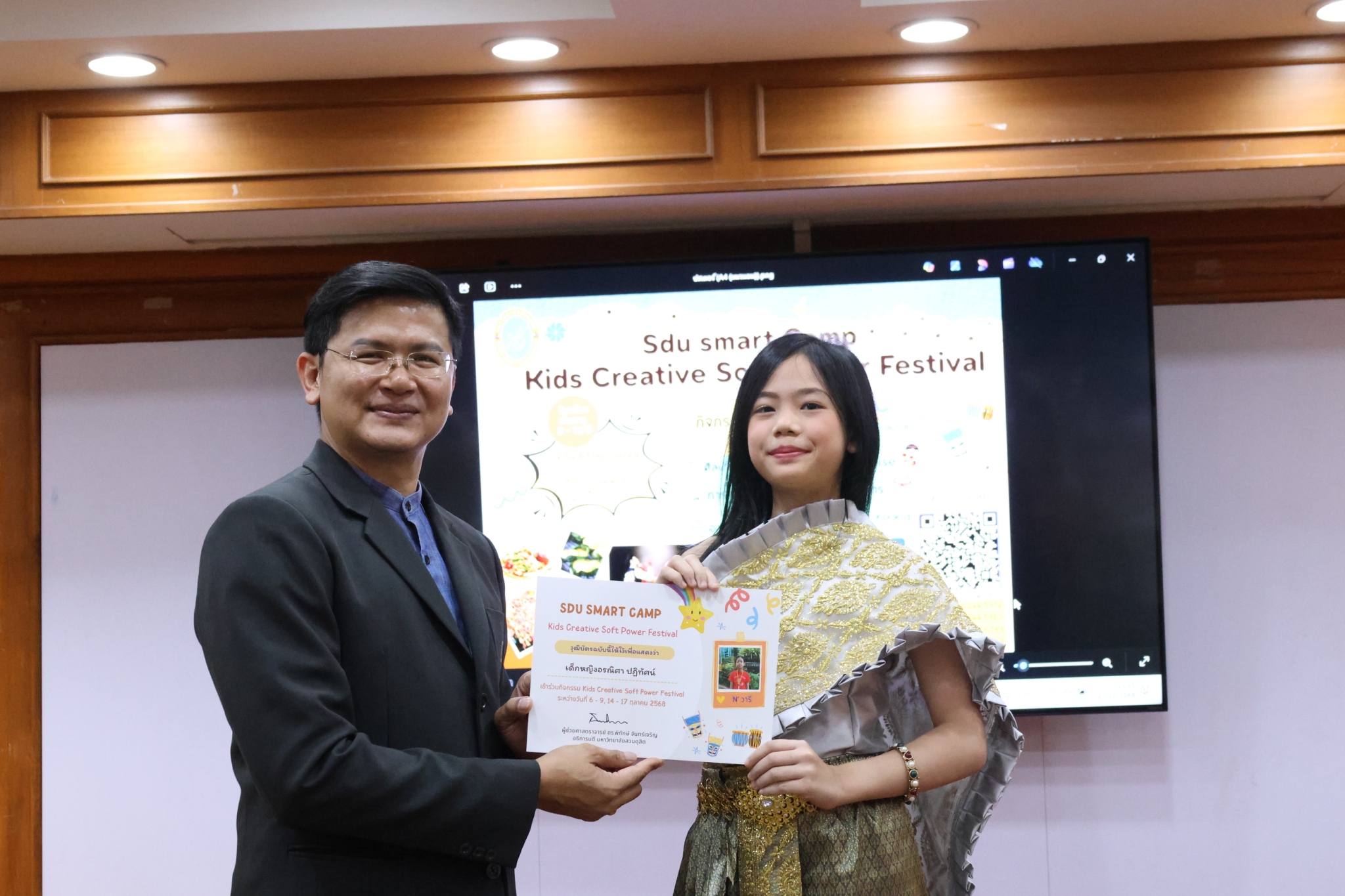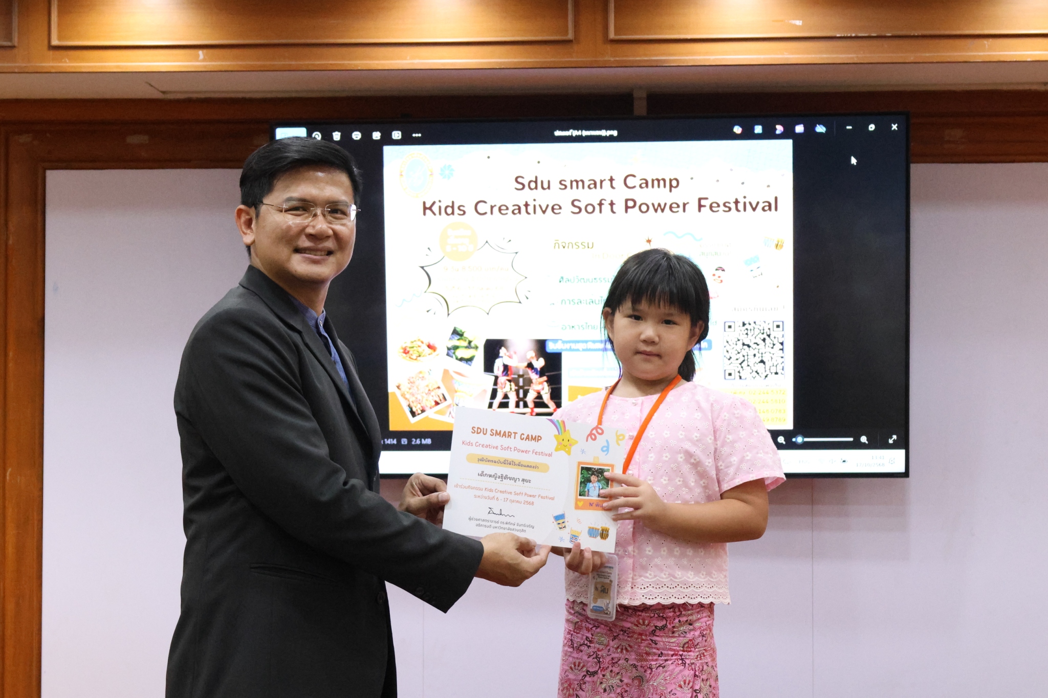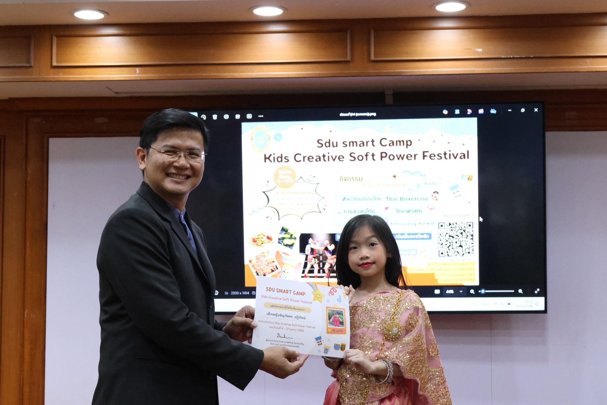 สำนักกิจการพิเศษ ร่วมกับ โครงการสอนดนตรีบุคคลภายนอก คณะมนุษยศาสตร์และสังคมศาสตร์ มสด. จัดกิจกรรม “เสริมสร้างพัฒนาการสำหรับเด็กประถมศึกษา : Kids Creative Soft Power Festival @ SDU Smart Camp in October 2025” (วันที่ 9) และมอบประกาศนียบัตรแก่ผู้เข้าร่วมกิจกรรม