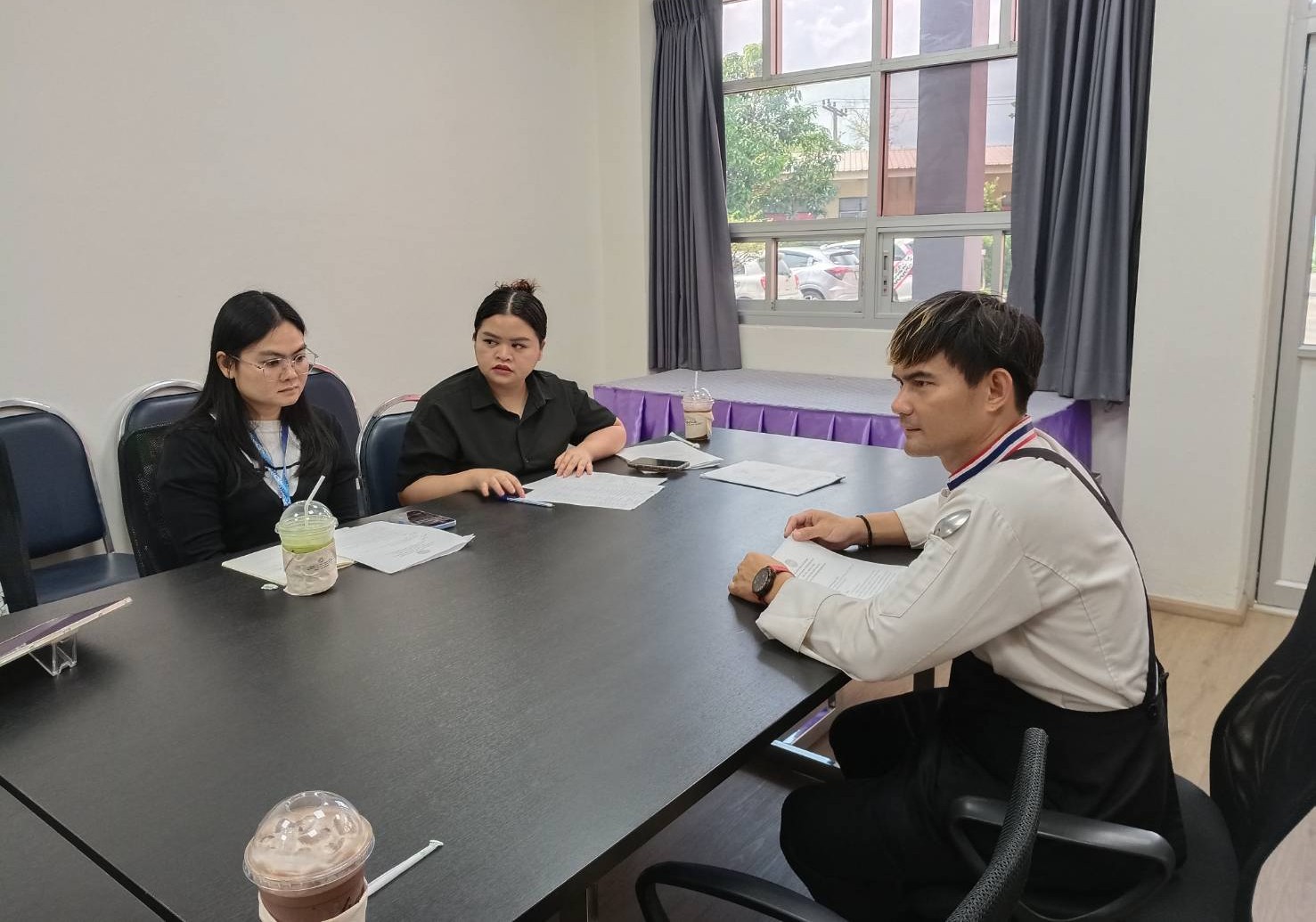 ดร.สุทัน มุมแดง ผู้อำนวยการสำนักกิจการพิเศษ ร่วมกับ ผศ.ว่าที่ร้อยตรี ดร.มงคลชัย บุญแก้ว ผู้อำนวยการศูนย์การศึกษา นครนายก และ Miss Evgeniya Trofimenko รักษาการแทนผู้จัดการโรงเรียนสาธิตละอออุทิศ ศูนย์ฯ นครนายก และผู้เกี่ยวข้อง ประชุมหารือดำเนินงานในประเด็นต่าง ๆ อาทิ การพิจารณารายการอาหารนักเรียนโรงเรียนสาธิตฯ และติดตามการดำเนินงานโครงการอาหารกลางวัน 1 (ครัวสวนดุสิต และหอพักนักศึกษา) พร้อมทั้งเยี่ยมชมพื้นที่ให้บริการ ณ มหาวิทยาลัยสวนดุสิต ศูนย์การศึกษา นครนายก เมื่อวันที่ 10 พฤศจิกายน 2568