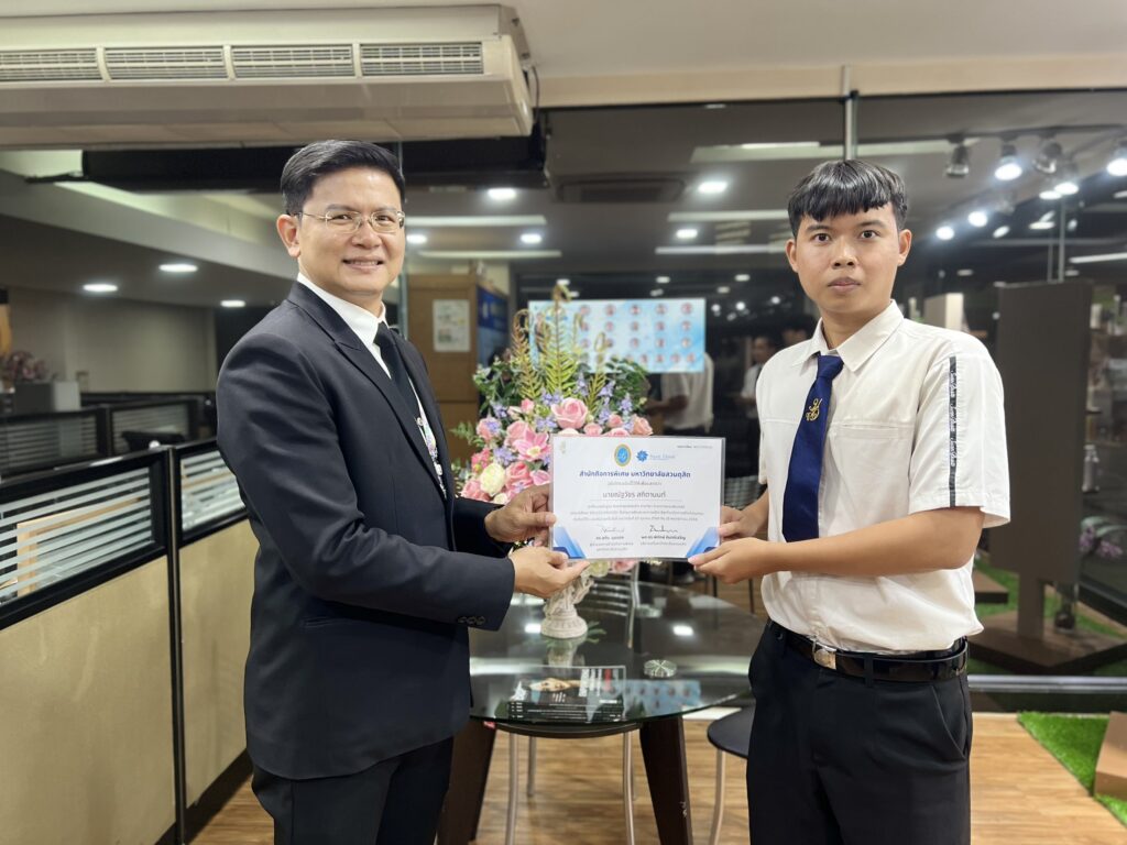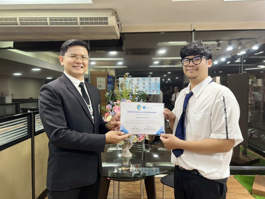 ดร.สุทัน มุมแดง ผู้อำนวยการสำนักกิจการพิเศษ มหาวิทยาลัยสวนดุสิต กล่าวแสดงความยินดี และมอบวุฒิบัตรรับรองการฝึกประสบการณ์วิชาชีพแก่นักศึกษาหลักสูตรวิทยาศาสตรบัณฑิต สาขาวิชาวิทยาการคอมพิวเตอร์ คณะวิทยาศาสตร์และเทคโนโลยี จำนวน 4 คน ที่ผ่านการฝึกประสบการณ์วิชาชีพ ระหว่างวันที่ 20 ตุลาคม – 28 พฤศจิกายน 2568 ในด้านการสร้างโปรแกรม ตัดต่อวิดีโอ และการพัฒนาปรับปรุงเว็บไซต์ ณ สำนักงานอำนวยการ สำนักกิจการพิเศษ มหาวิทยาลัยสวนดุสิต เมื่อวันที่ 28 พฤศจิกายน 2568