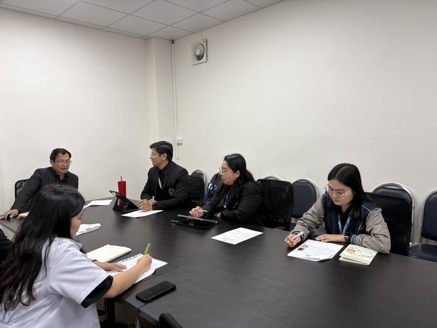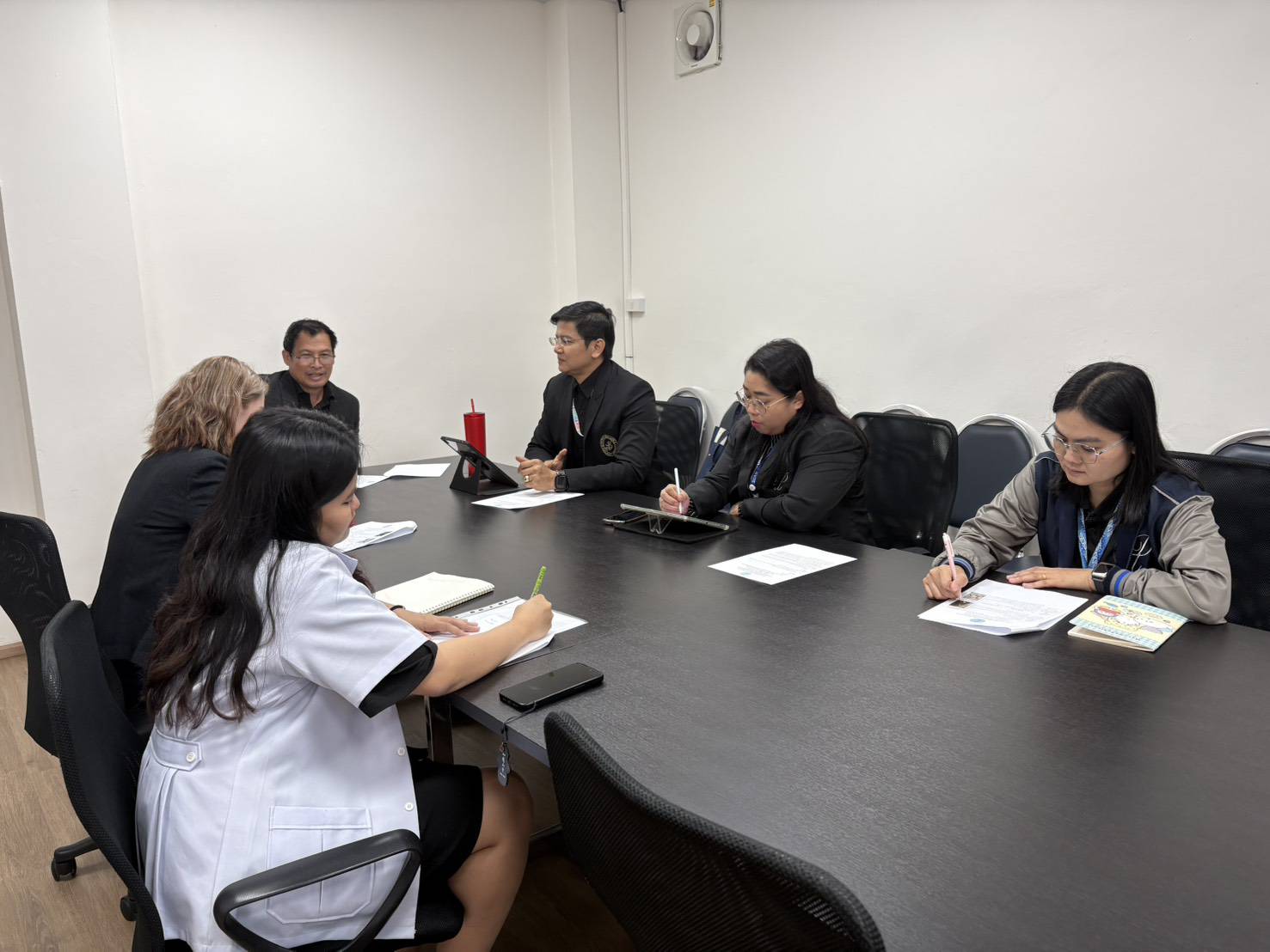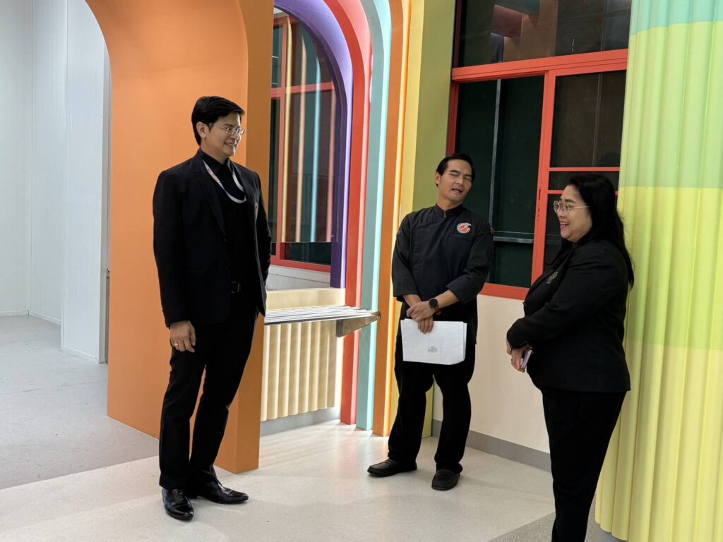 ดร.สุทัน มุมแดง ผู้อำนวยการสำนักกิจการพิเศษ ร่วมกับ ผศ.ว่าที่ร้อยตรี ดร.มงคลชัย บุญแก้ว ผู้อำนวยการศูนย์การศึกษา นครนายก และ Miss Evgeniya Trofimenko รักษาการแทนผู้จัดการโรงเรียนสาธิตละอออุทิศ ศูนย์ฯ นครนายก และผู้เกี่ยวข้อง ประชุมหารือดำเนินงานในประเด็นต่าง ๆ และติดตามการดำเนินงานโครงการอาหารกลางวัน 1 (ครัวสวนดุสิต และหอพักนักศึกษา) พร้อมทั้งเยี่ยมชมพื้นที่ให้บริการ ณ มหาวิทยาลัยสวนดุสิต ศูนย์การศึกษา นครนายก เมื่อวันที่ 12 มกราคม 2569