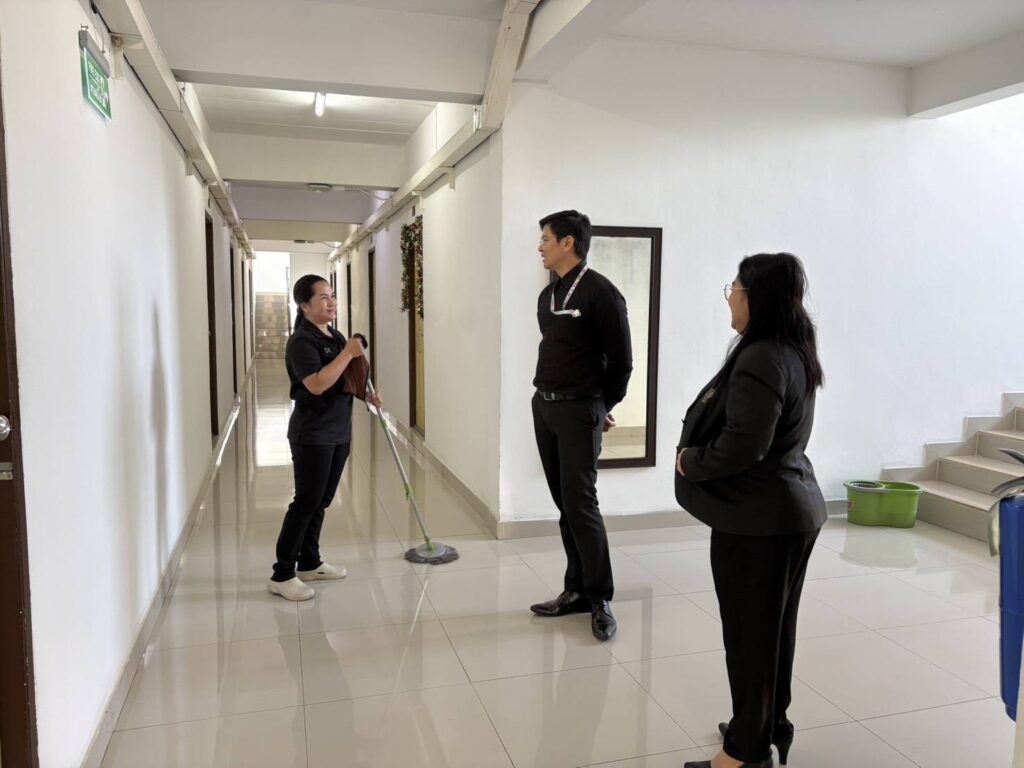 สำนักกิจการพิเศษ ม.สวนดุสิต ตรวจเยี่ยมการดำเนินงานโครงการอาหารกลางวัน 1 (หอพักนักศึกษา และครัวสวนดุสิต) ศูนย์ฯ นครนายก