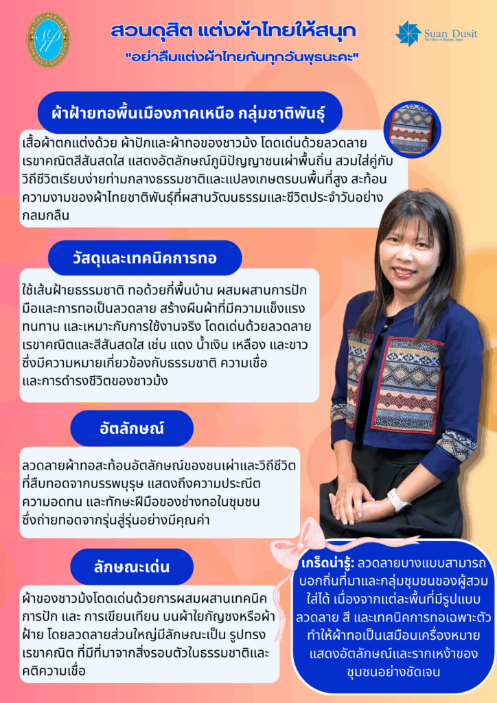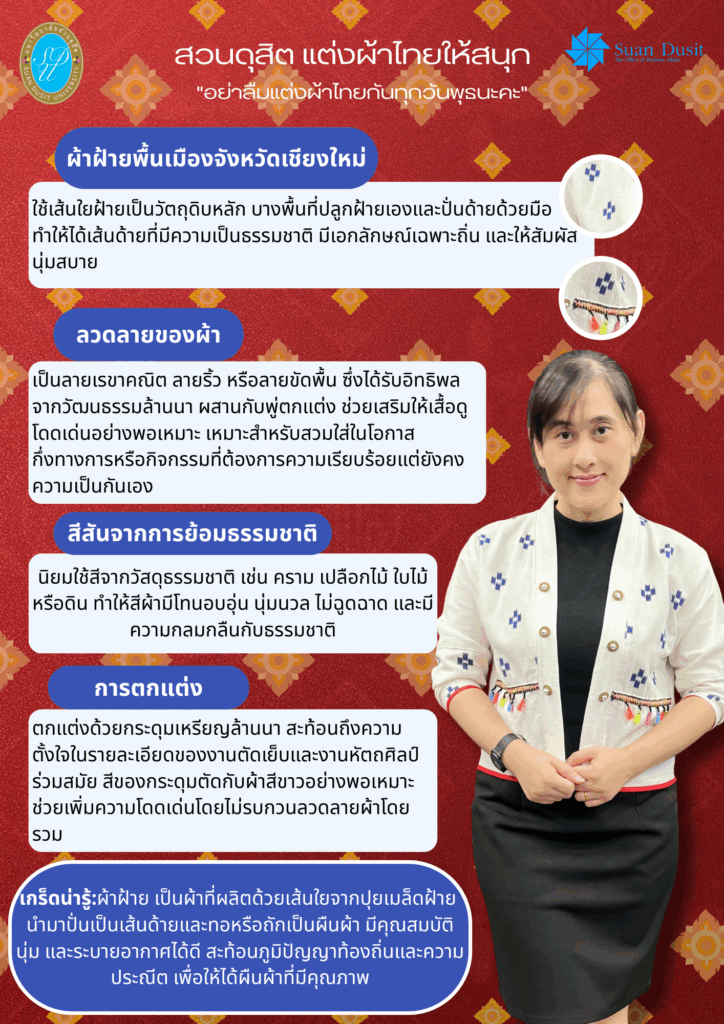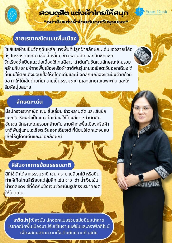 สำนักกิจการพิเศษ มหาวิทยาลัยสวนดุสิต ร่วมสืบสานวัฒนธรรมประเพณีไทย “สวมใส่ผ้าไทยให้สนุกทุกวันพุธ”