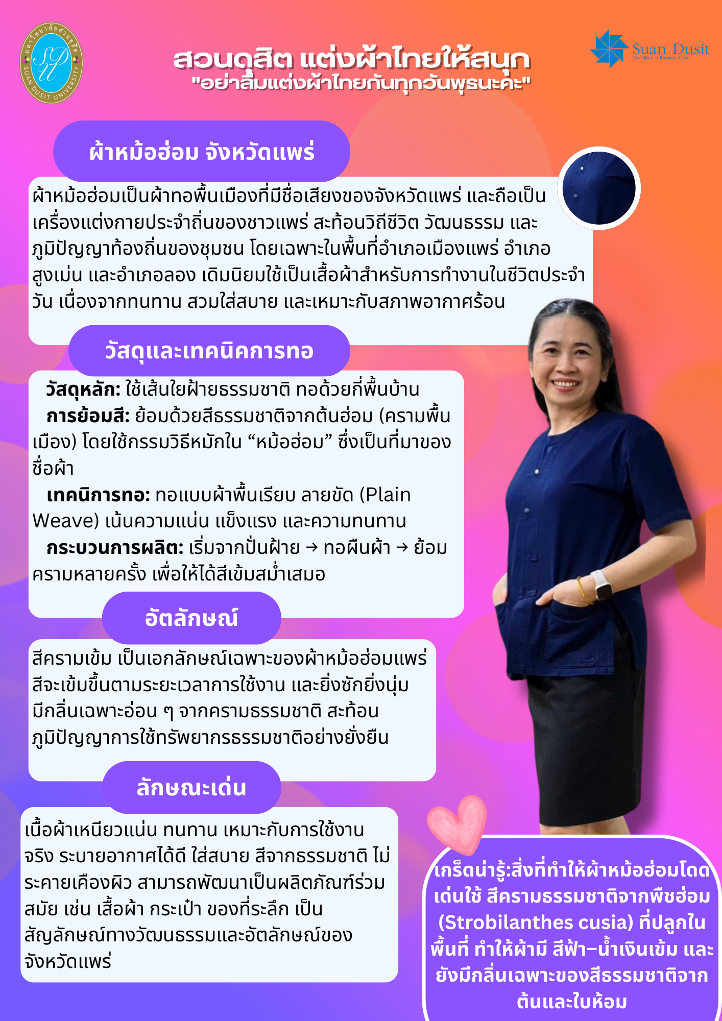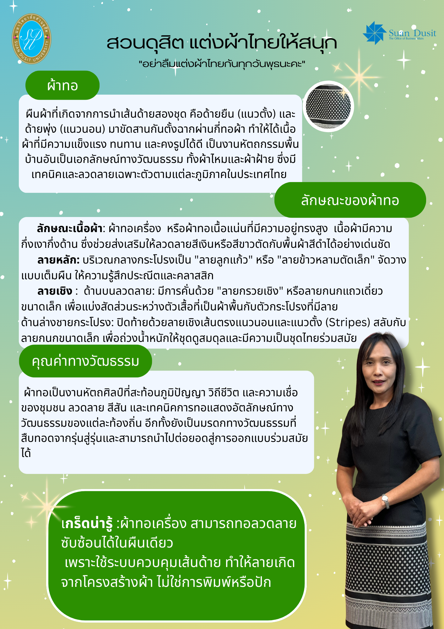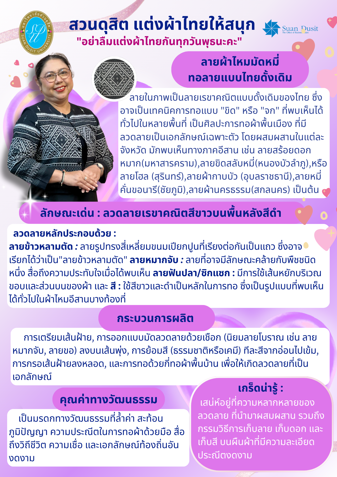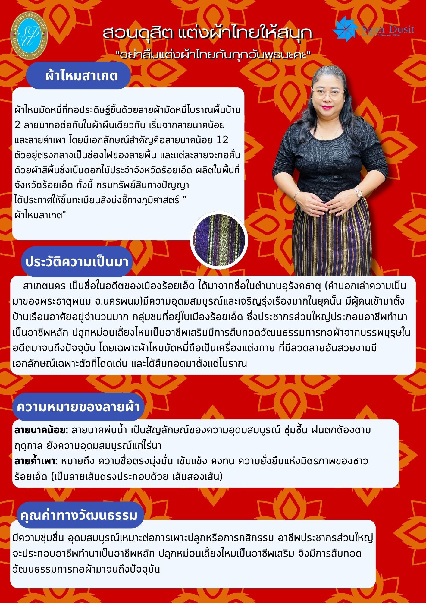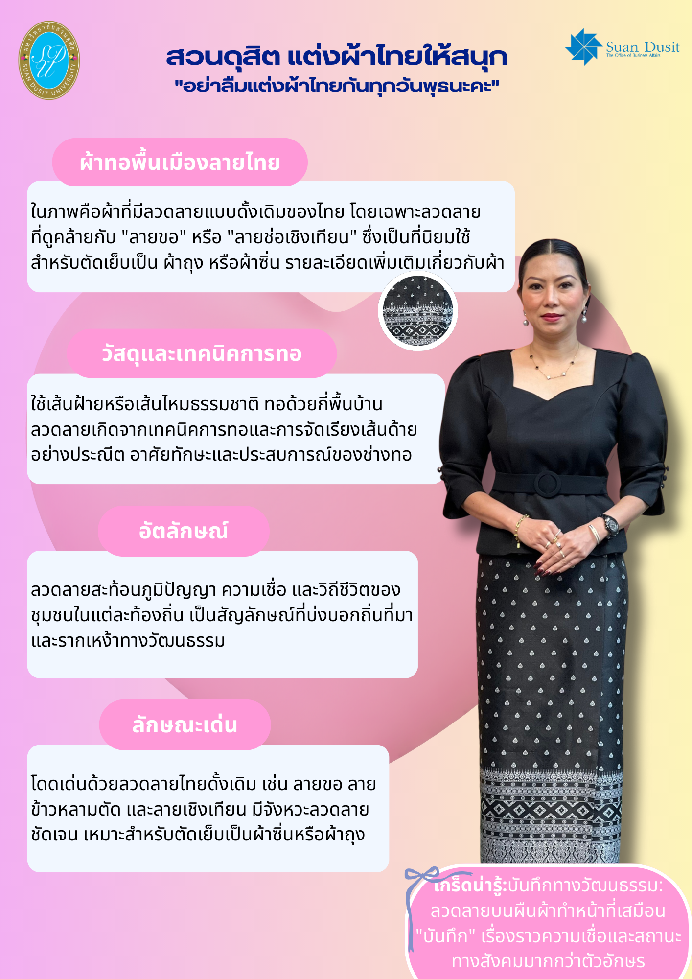 สำนักกิจการพิเศษ มหาวิทยาลัยสวนดุสิต ร่วมสืบสานวัฒนธรรมประเพณีไทย “สวมใส่ผ้าไทยให้สนุกทุกวันพุธ”
