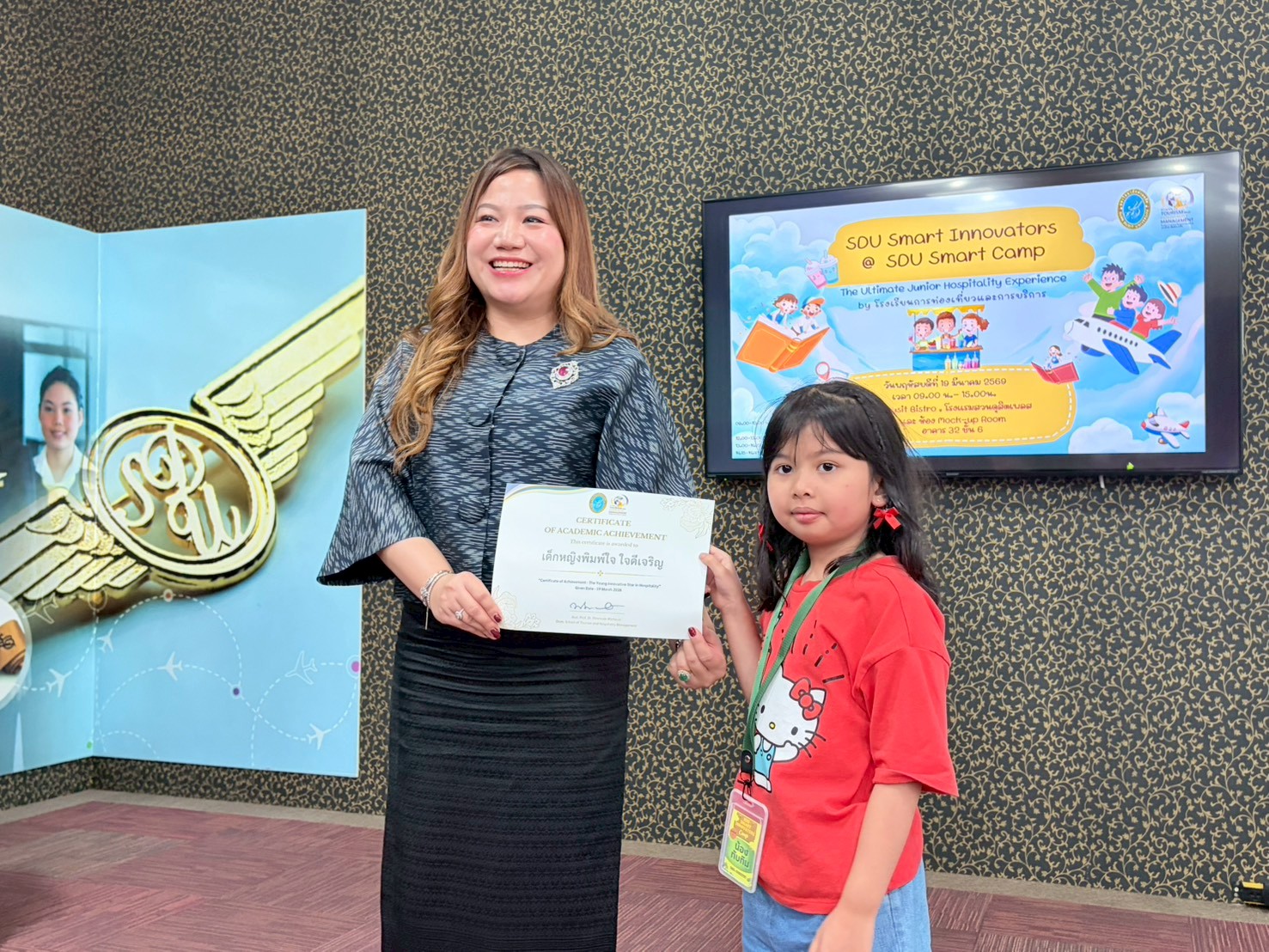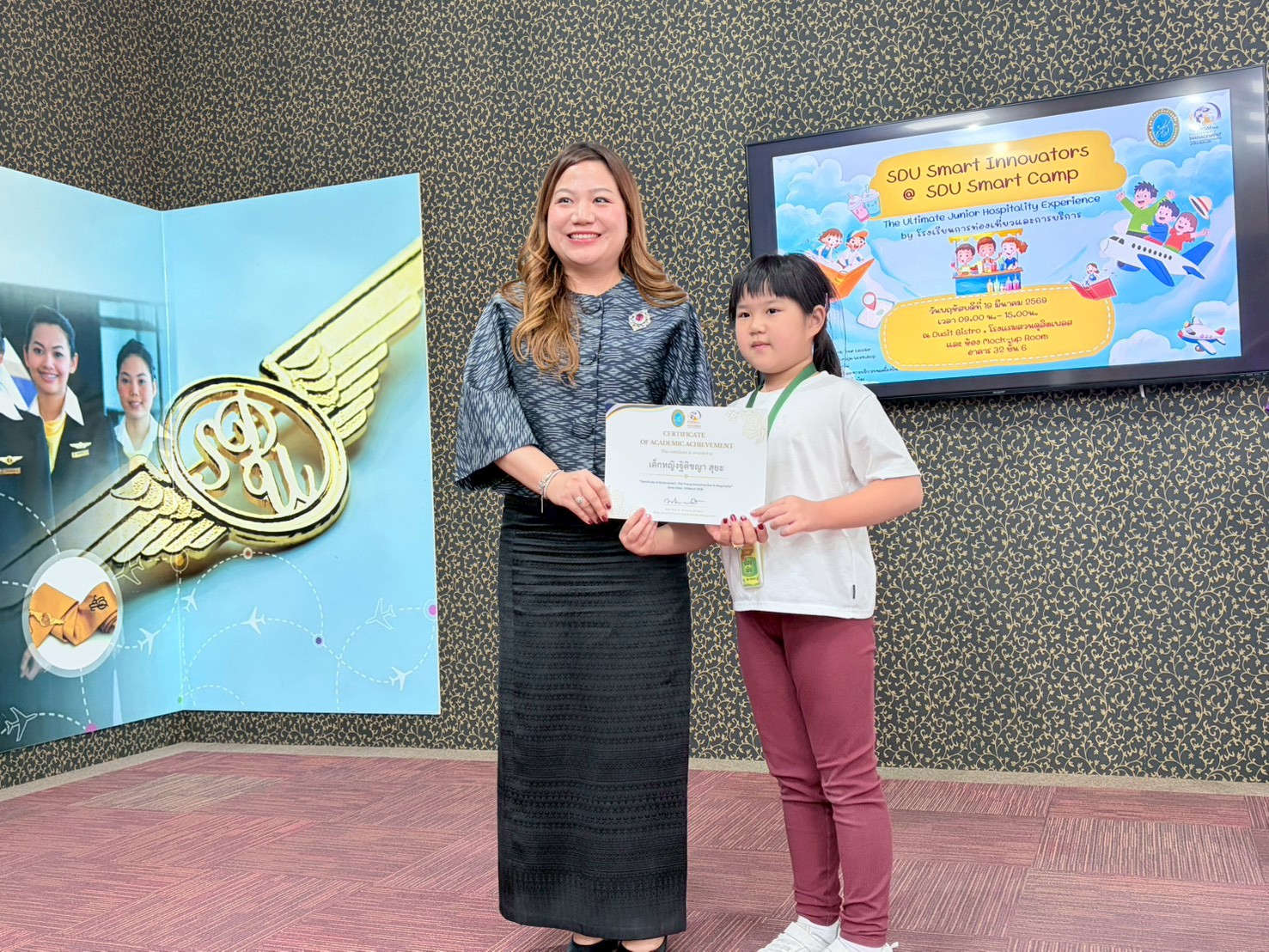 สำนักกิจการพิเศษ ร่วมกับ โครงการสอนดนตรีบุคคลภายนอก คณะมนุษยศาสตร์และสังคมศาสตร์ มหาวิทยาลัยสวนดุสิต จัดกิจกรรม SDU Smart Innovators Camp ธีมนวัตกรจิ๋วเพื่อโลกยั่งยืน สำหรับเด็กอายุ 5-10 ปี ระหว่างวันที่ 9-27 มีนาคม 2569 ซึ่งในวันที่ 9 (วันที่ 19 มีนาคม 2569) ประกอบด้วยกิจกรรมการทำเครื่องดื่ม จำลองการท่องเที่ยวไปกับสถานที่ต่าง ๆ และจำลองการเป็นพนักงานบริการบนเครื่องบิน โดยทีมวิทยากรจากโรงเรียนการท่องเที่ยวและการบริการ ในโอกาสนี้ ผศ.ดร.พิมพ์มาดา วิชาศิลป์ คณบดีโรงเรียนการท่องเที่ยวและการบริการ ให้เกียรติกล่าวเปิดกิจกรรมดังกล่าว ณ Dusit Bistro อาคาร 2 ห้อง Lecture Room ชั้น 5 โรงแรมสวนดุสิต เพลส และ Mock-up Room อาคาร 32