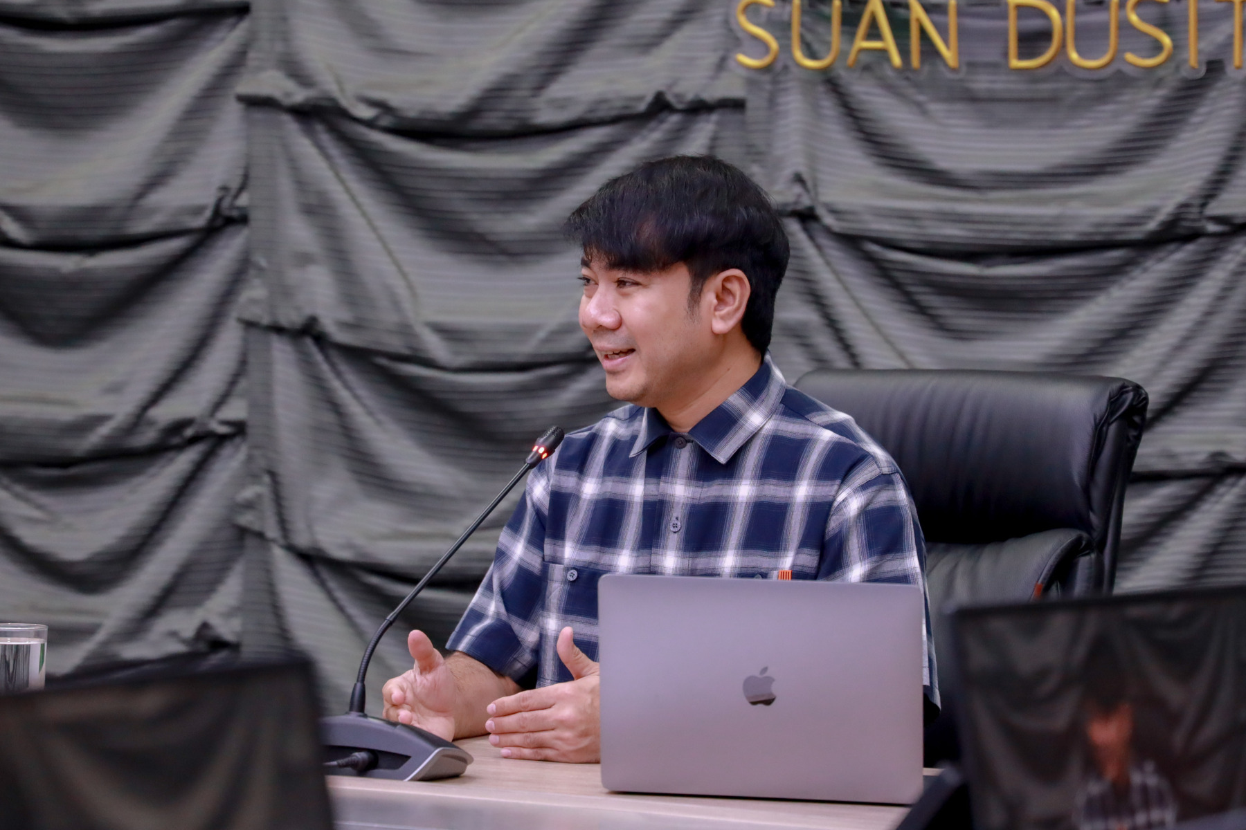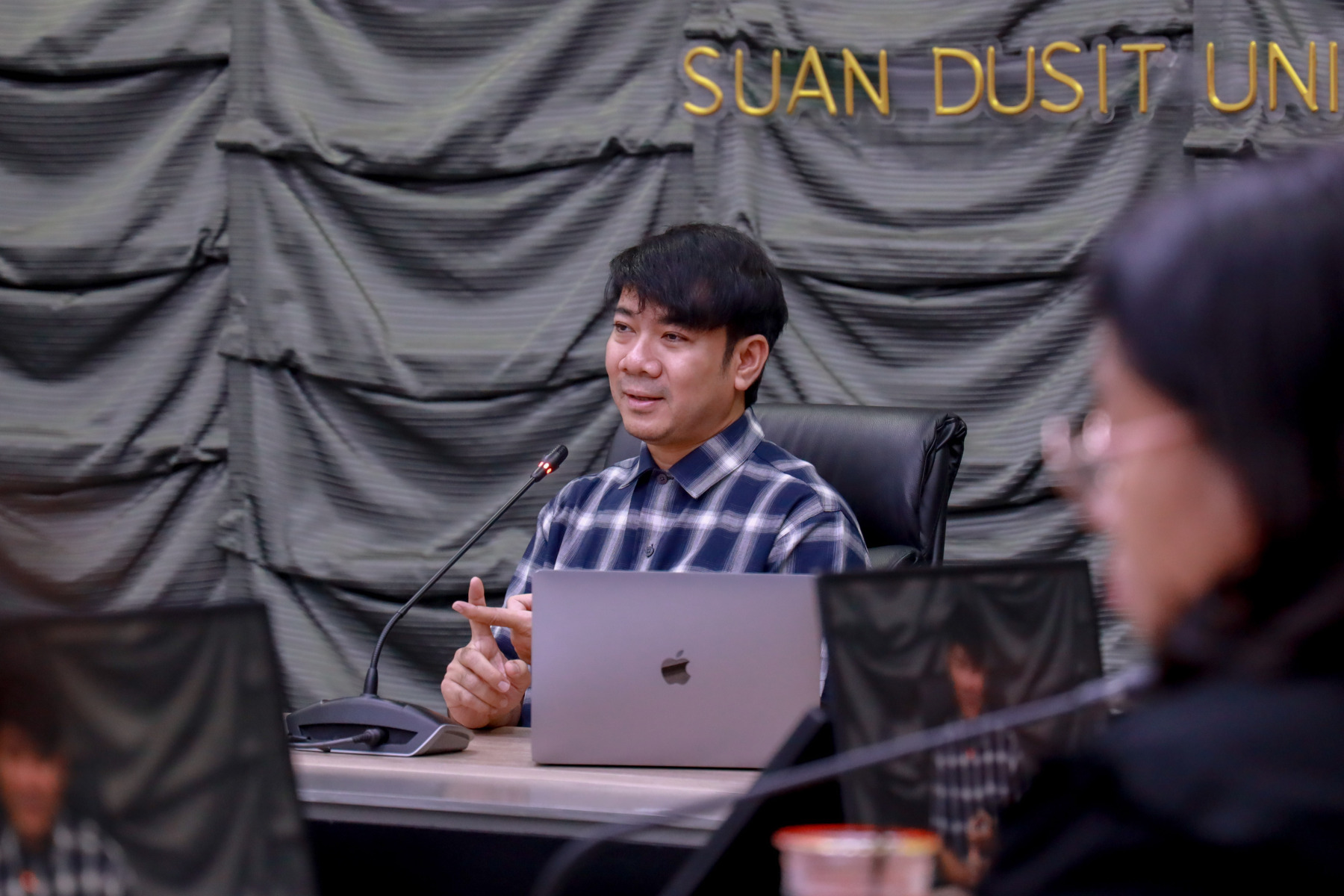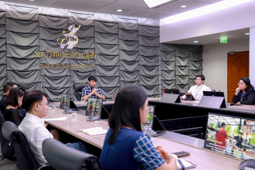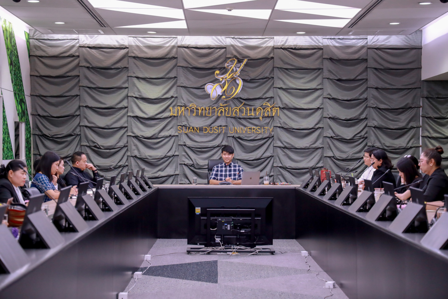 ดร.สุทัน มุมแดง ผู้อำนวยการสำนักกิจการพิเศษ ร่วมกับ ผศ.ดร.ยุธยา อยู่เย็น ผู้อำนวยการสำนักนวัตกรรมชุมชน มหาวิทยาลัยสวนดุสิต จัดประชุมเชื่อมโยงการดำเนินงานด้านการตลาด โดยมี ดร.นราธิป อ่ำเที่ยงตรง ผู้ทรงคุณวุฒิ กรรมการบริหารสำนักกิจการพิเศษ เป็นประธานการประชุม เพื่อหารือแนวทางการต่อยอดงานวิจัยและงานวิชาการสู่การเชื่อมโยงไปยังตลาดชุมชน อันจะนำไปสู่การส่งเสริมการท่องเที่ยว การสร้างความเข้มแข็งให้แก่ชุมชน ตลอดจนการยกระดับการพัฒนาผลิตภัณฑ์และเพิ่มรายได้ให้แก่ชุมชน ณ ห้องประชุมศาลาชื่นอารมณ์ เมื่อวันที่ 9 เมษายน 2569